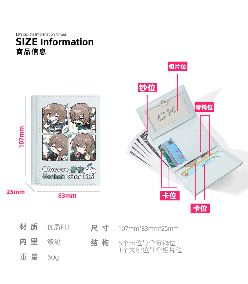 崩坏 星穹铁道 周边 彦卿 三月七 景元 卡通游戏二次元短款零钱包