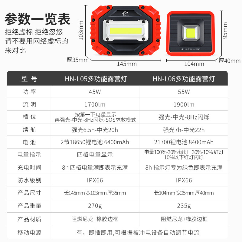 露营灯户外照明灯帐篷灯挂式营地野营灯冲电家用应急灯停电备用灯