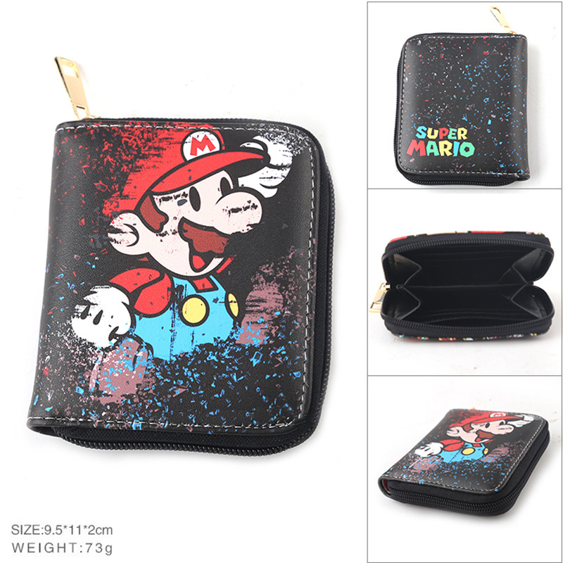 游戏动漫卡通马里奥可爱蘑菇玛丽拉链钱包男短二次元PU革跨境卡包