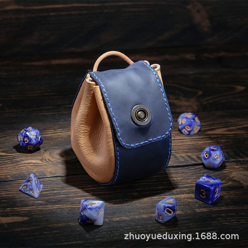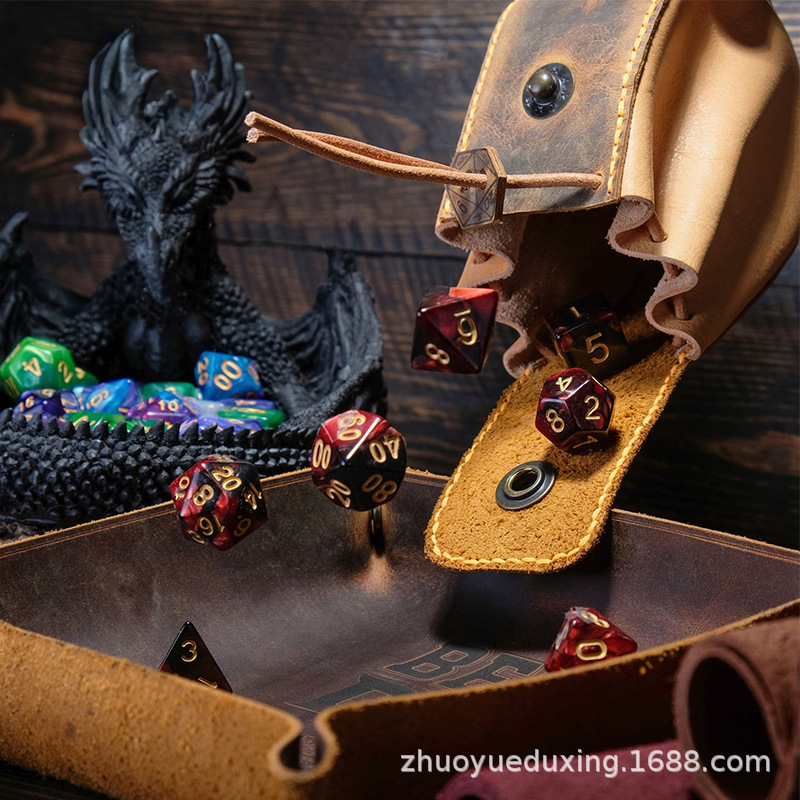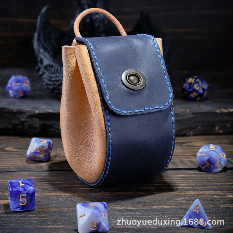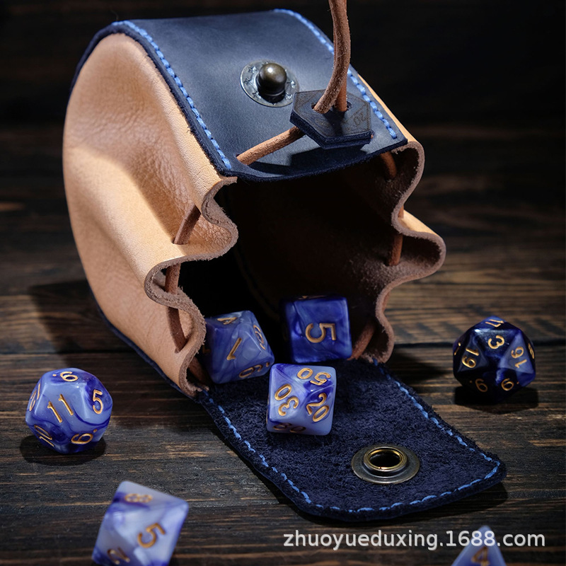 跨境复古牛皮游戏骰子袋 龙与地下城抽绳零钱包 RPG骰子游戏包