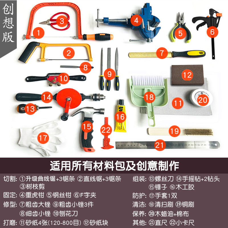 Y5UG批发儿童木工工具套装 手工DIY幼儿园学校区角木工坊儿童亲子