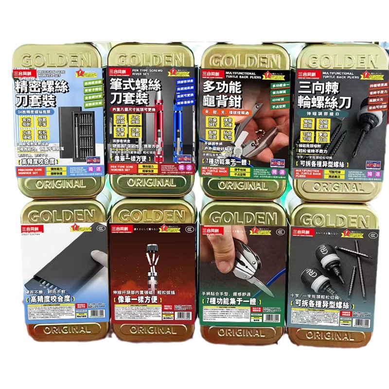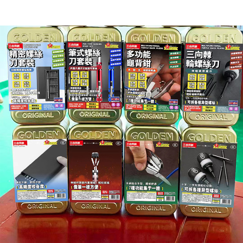 黄金铁盒工具组系列24合1螺丝刀套装多功能锅背钳台湾娃娃机爆款