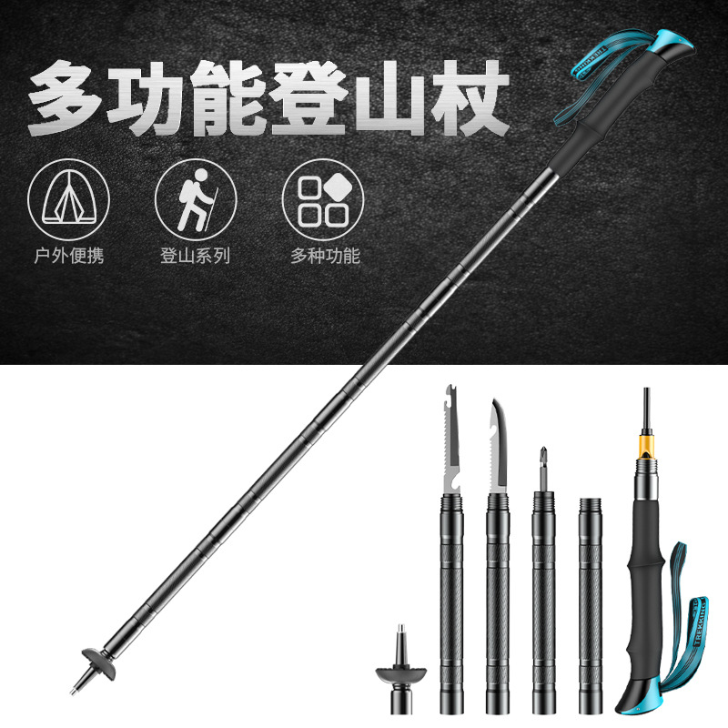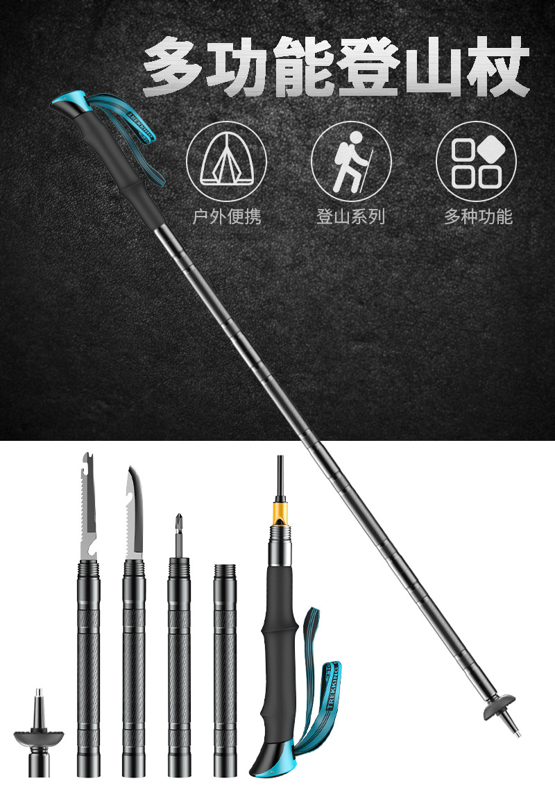 登山杖多功能手杖超轻伸缩折叠户外装备爬山拐杖防身爬山棍