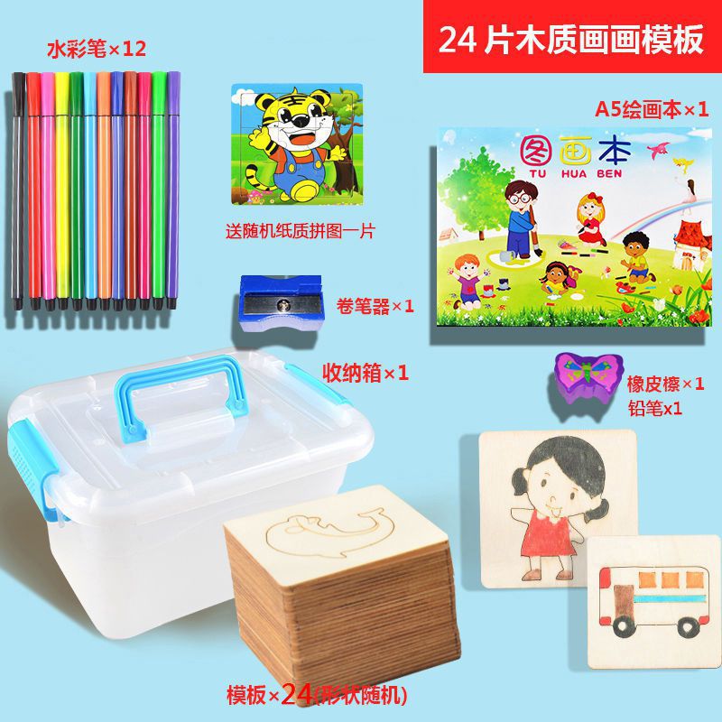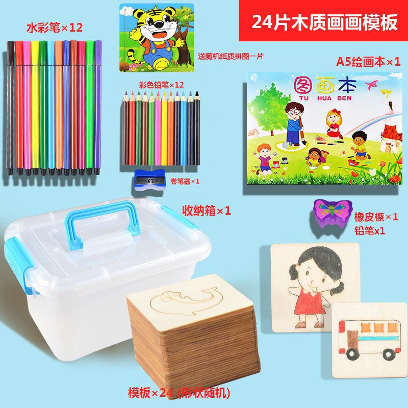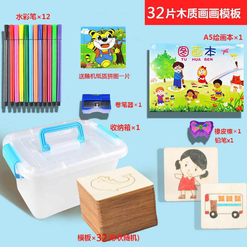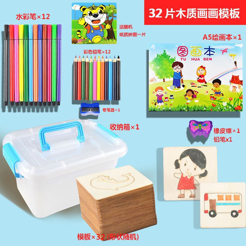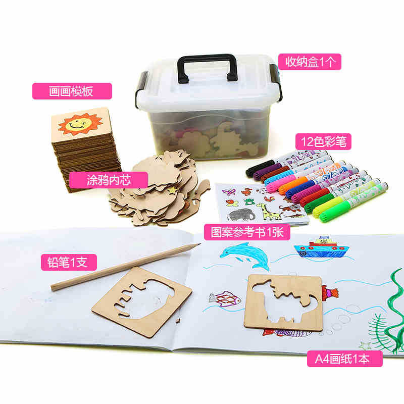 木质画画套装工具儿童学画涂鸦绘画模板幼儿益智玩具小学生男女孩