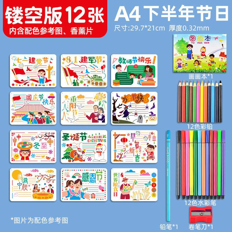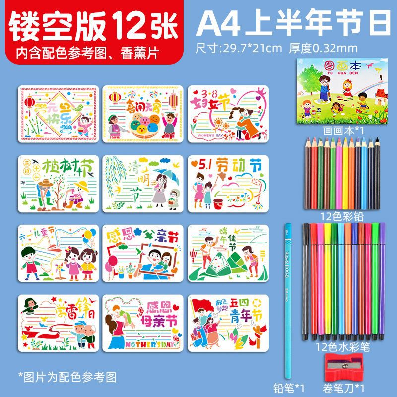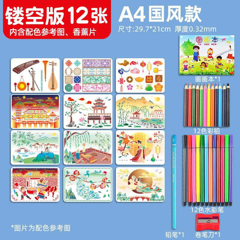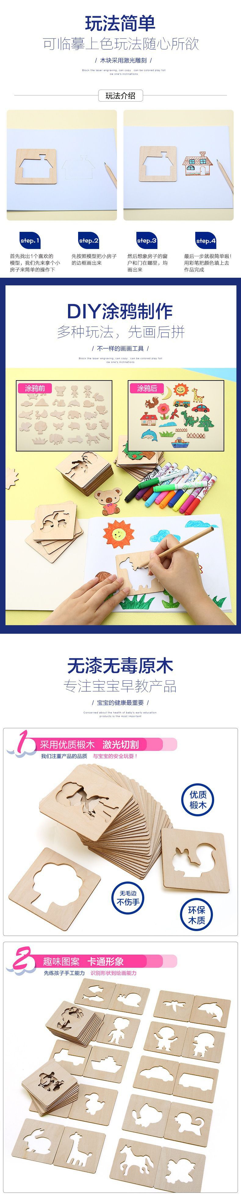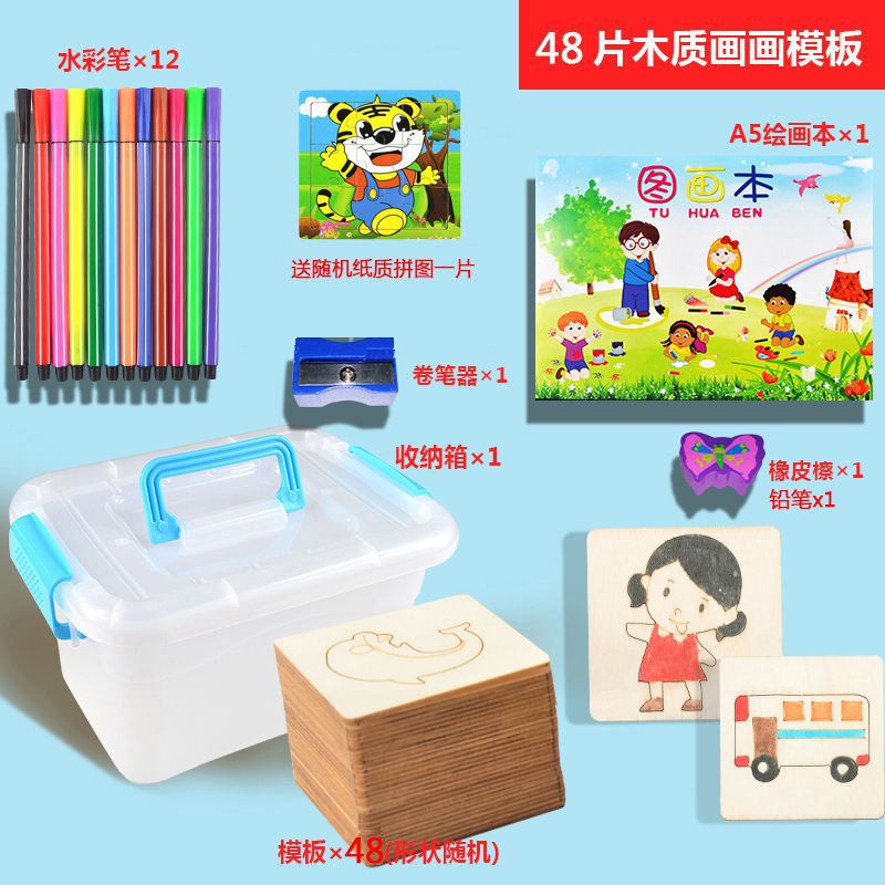 木质画画套装工具儿童学画涂鸦绘画模板幼儿益智玩具小学生男女孩