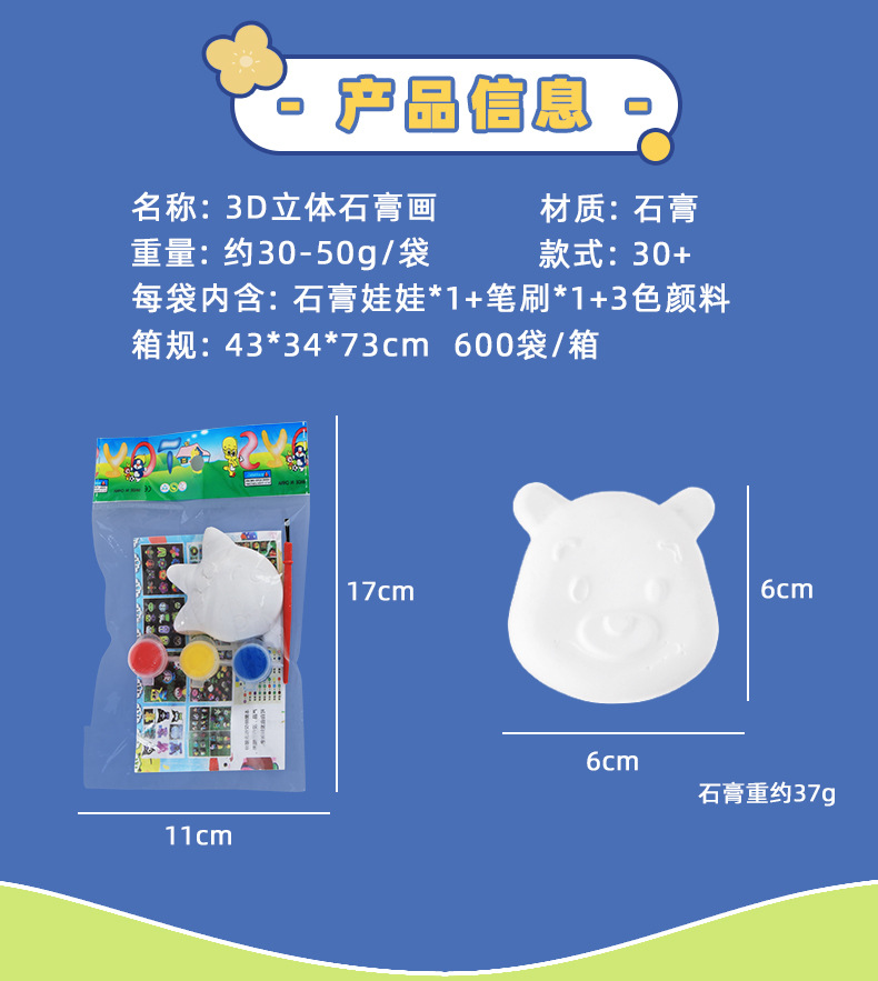 彩绘石膏娃娃批发儿童手工diy涂鸦带颜料模具创意绘画套装小玩具