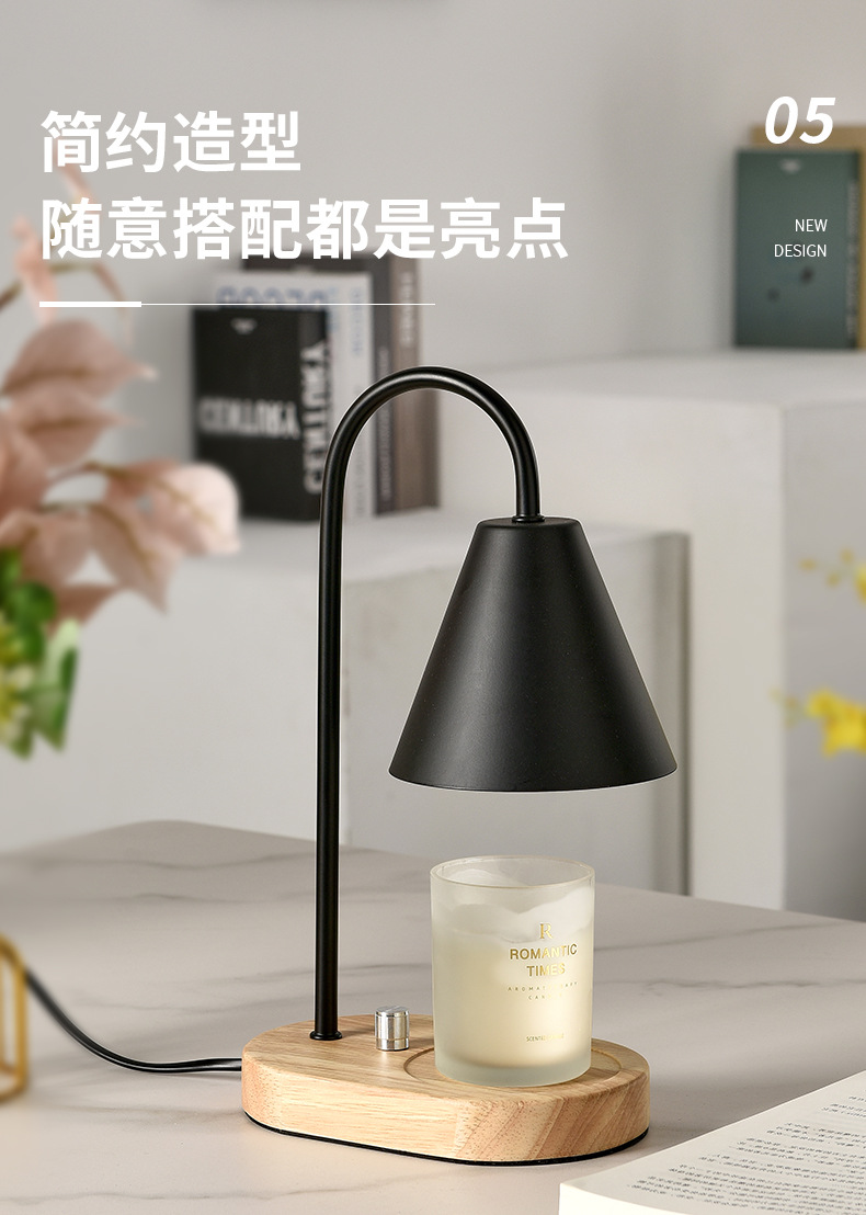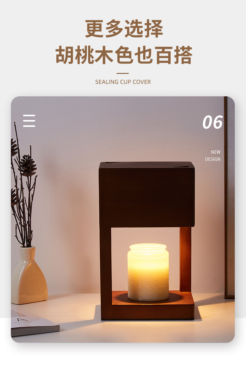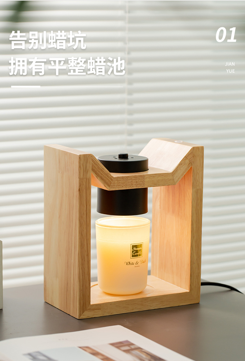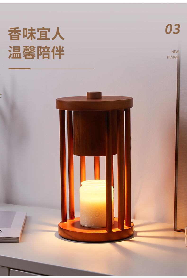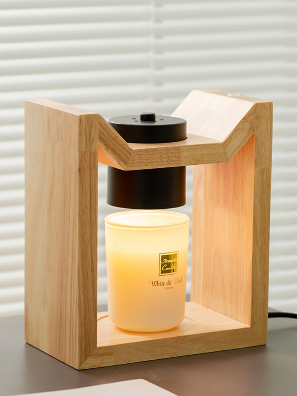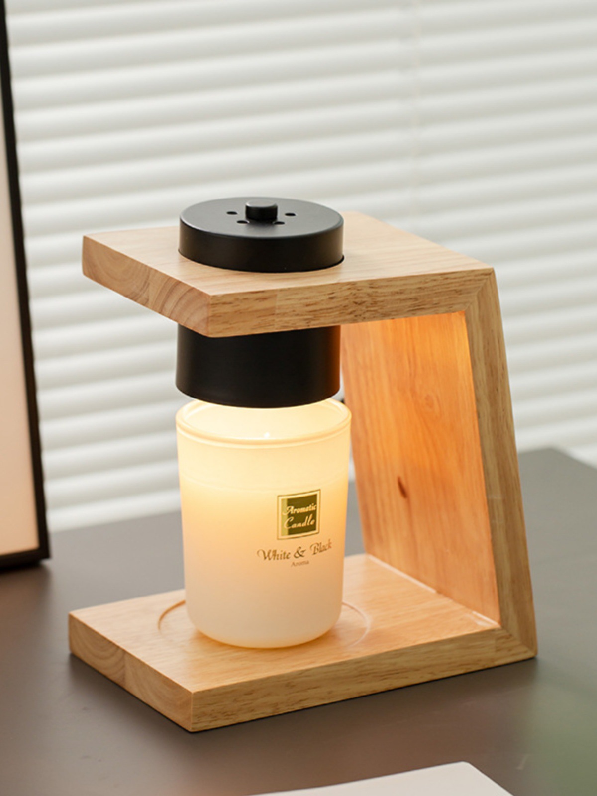 日式原木融蜡灯卧室装饰氛围香薰蜡烛灯可调光定时加热实木融烛灯