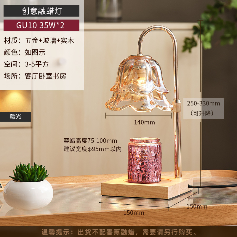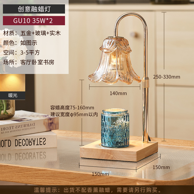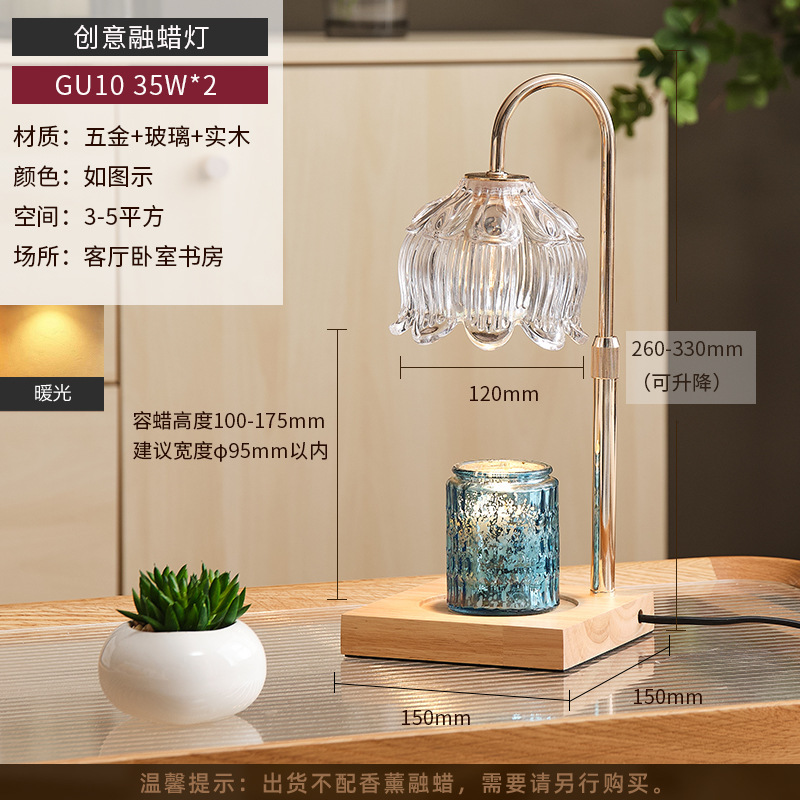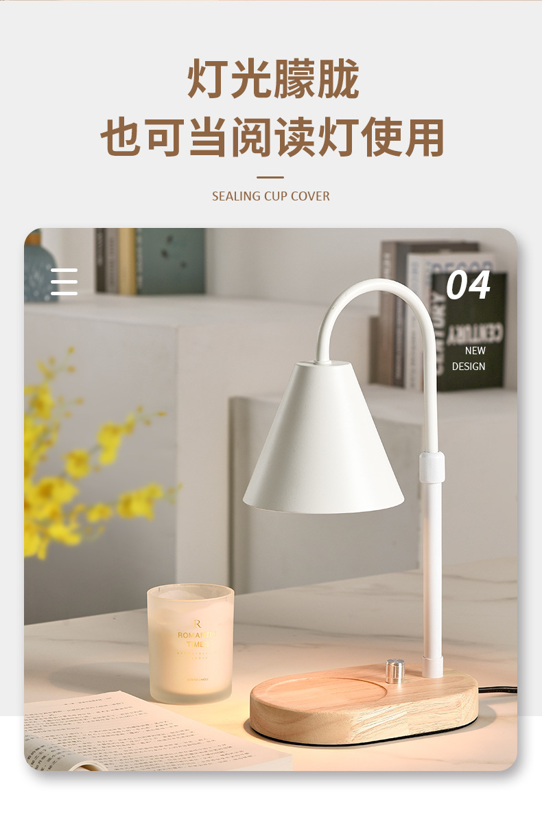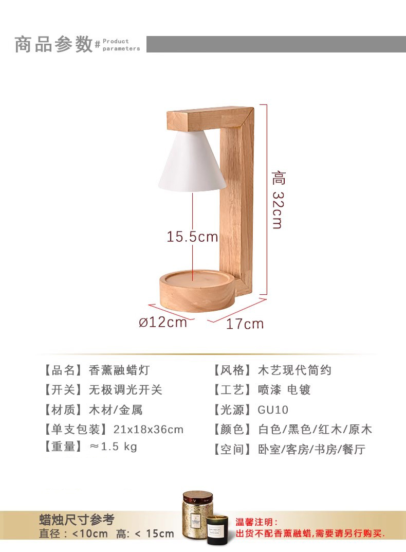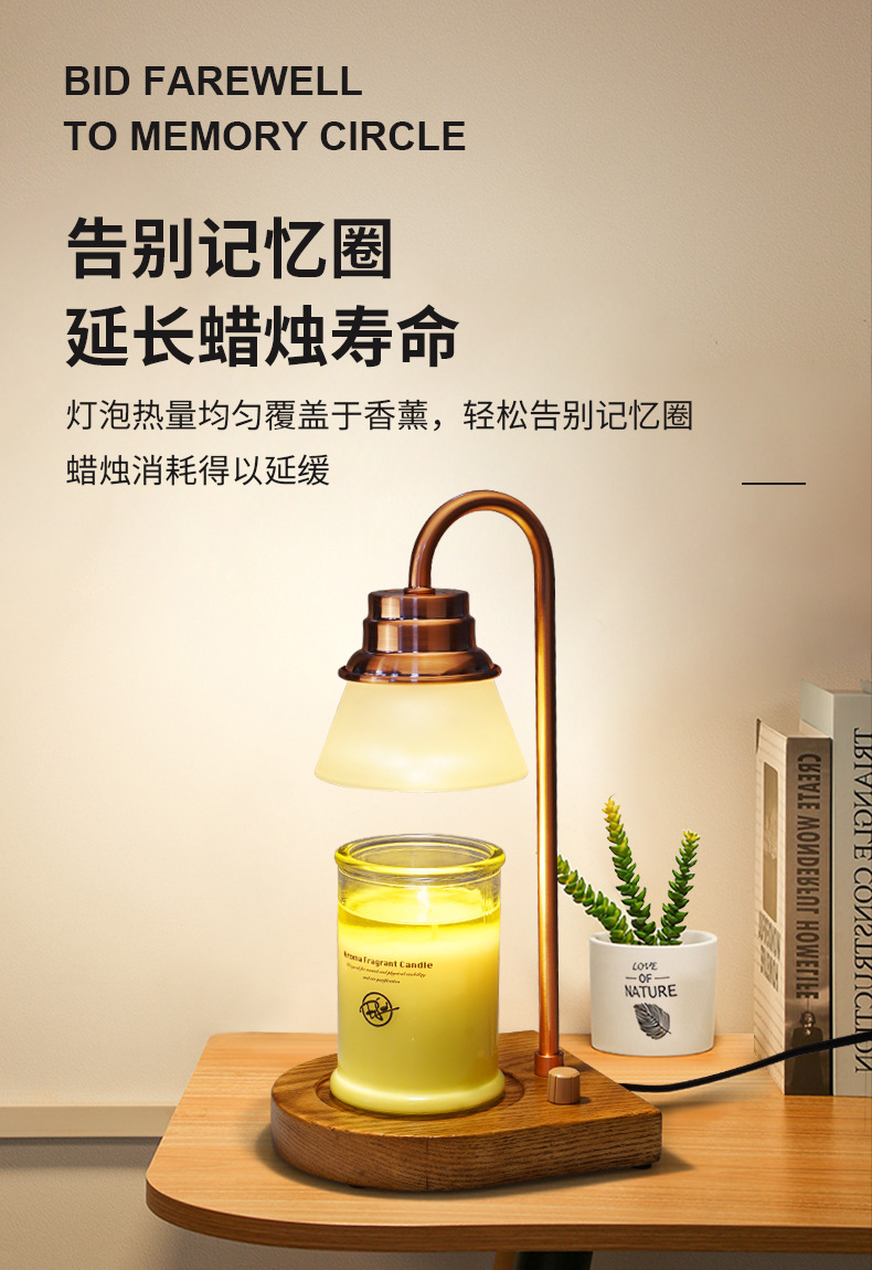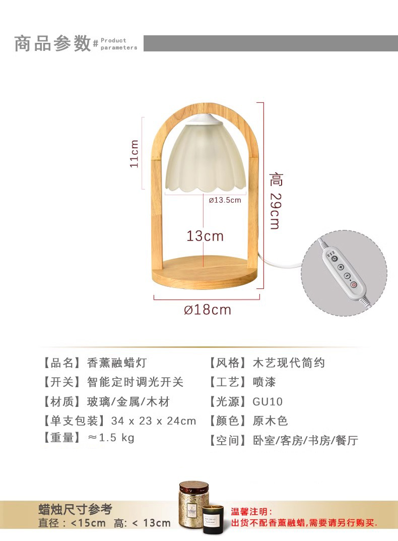 日式原木融蜡灯卧室装饰氛围香薰蜡烛灯可调光定时加热实木融烛灯