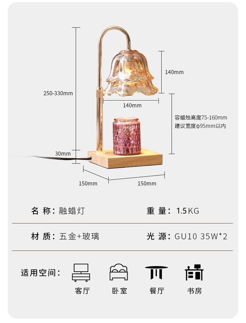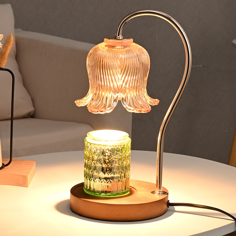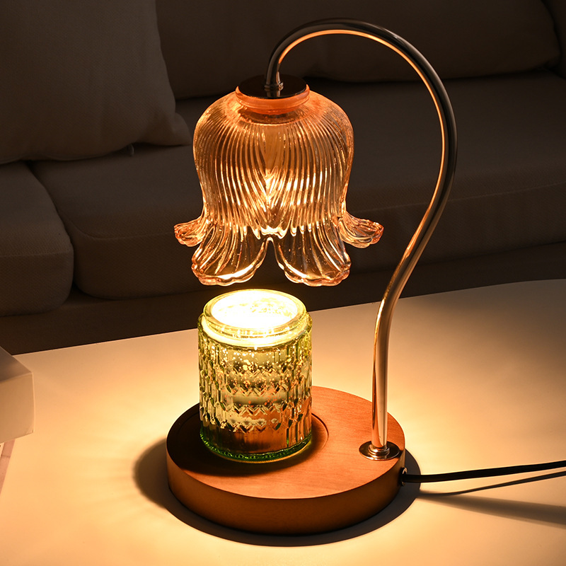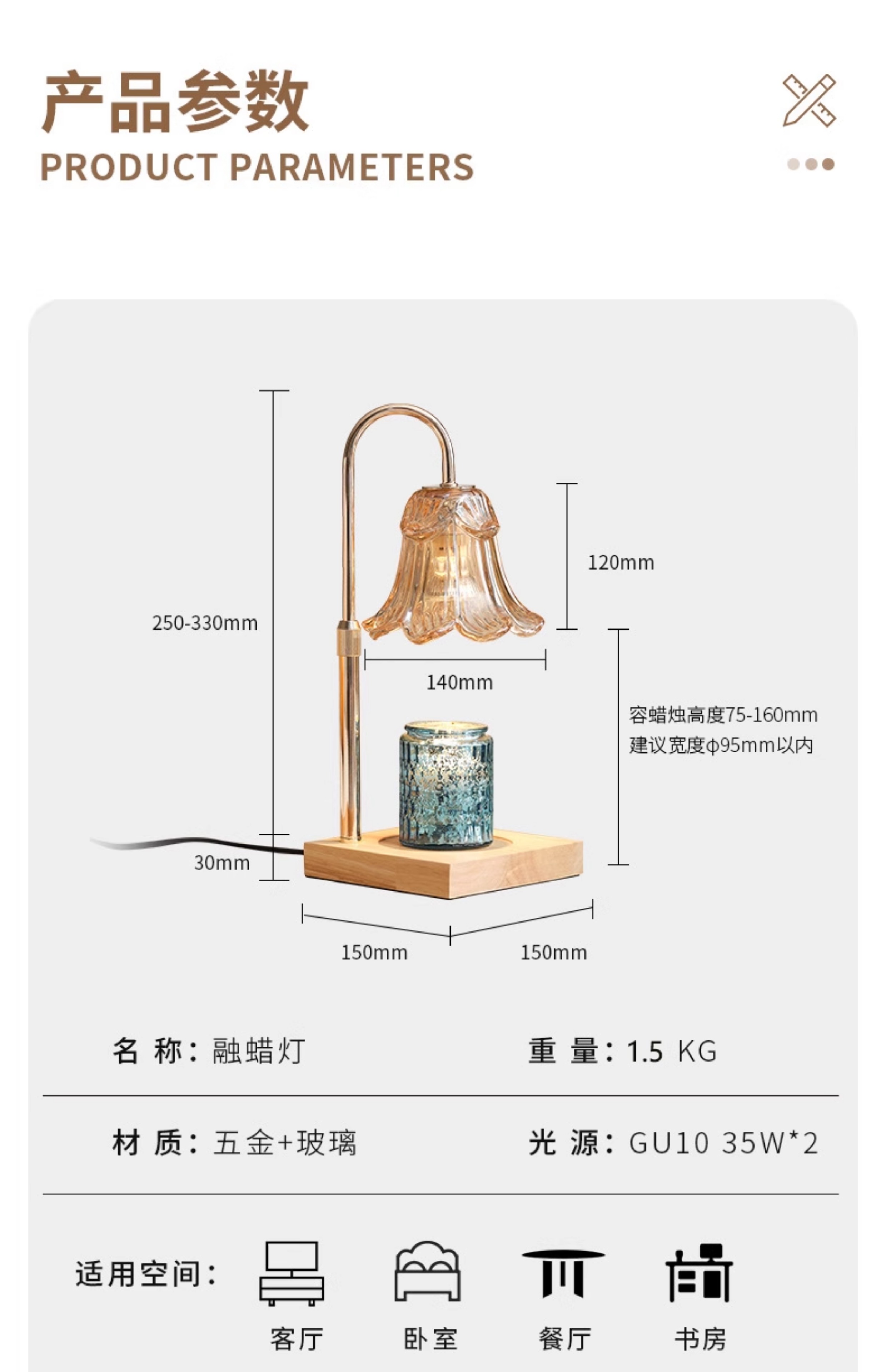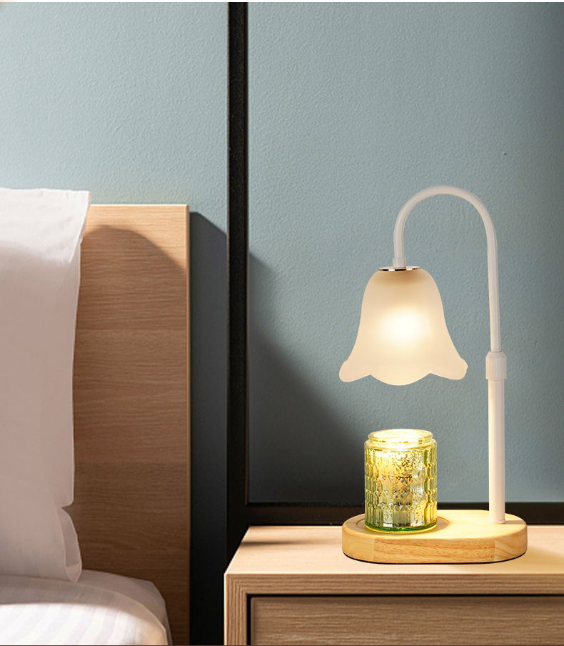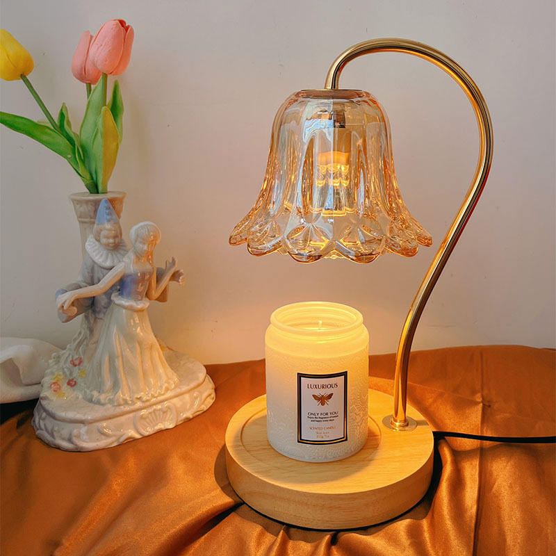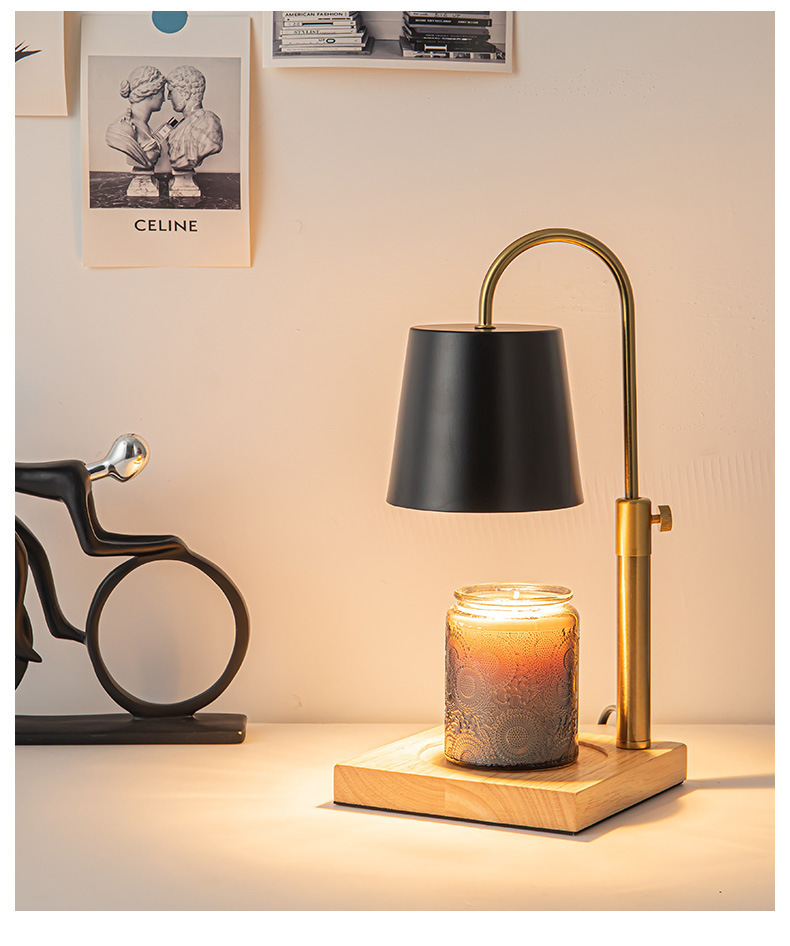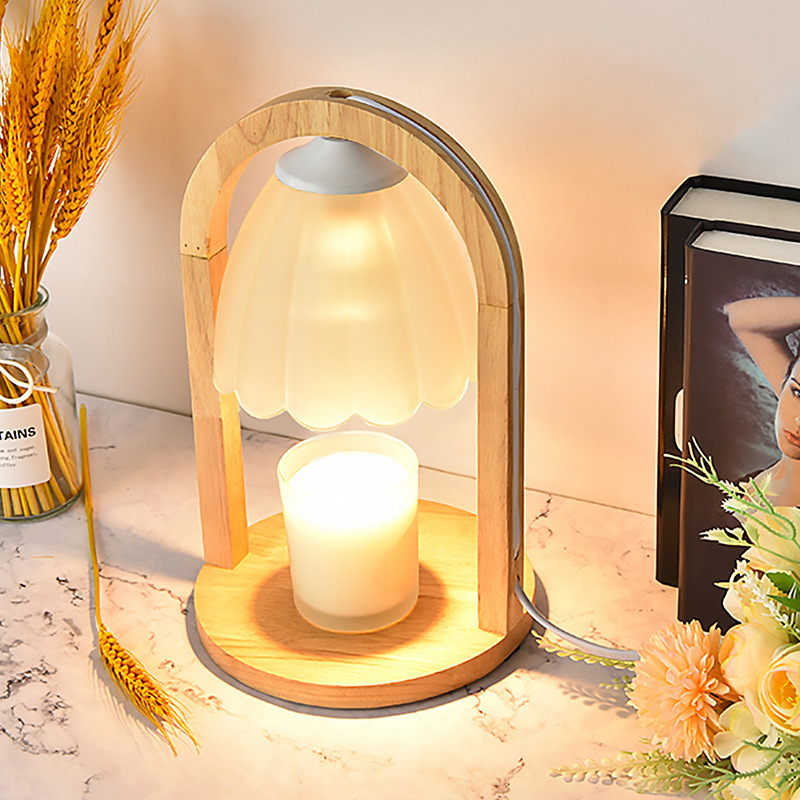 日式原木融蜡灯卧室装饰氛围香薰蜡烛灯可调光定时加热实木融烛灯