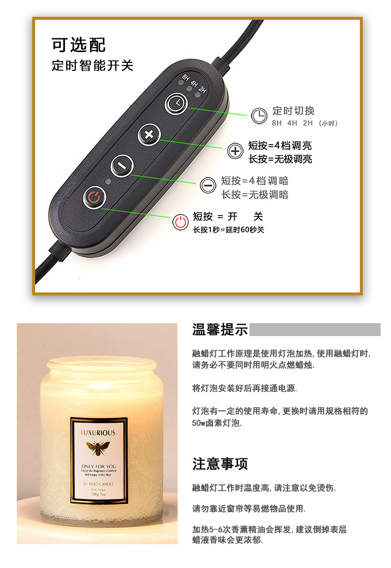 日式创意定时香薰蜡烛加热器精油融蜡灯融烛灯扩香灯亚马逊厂家