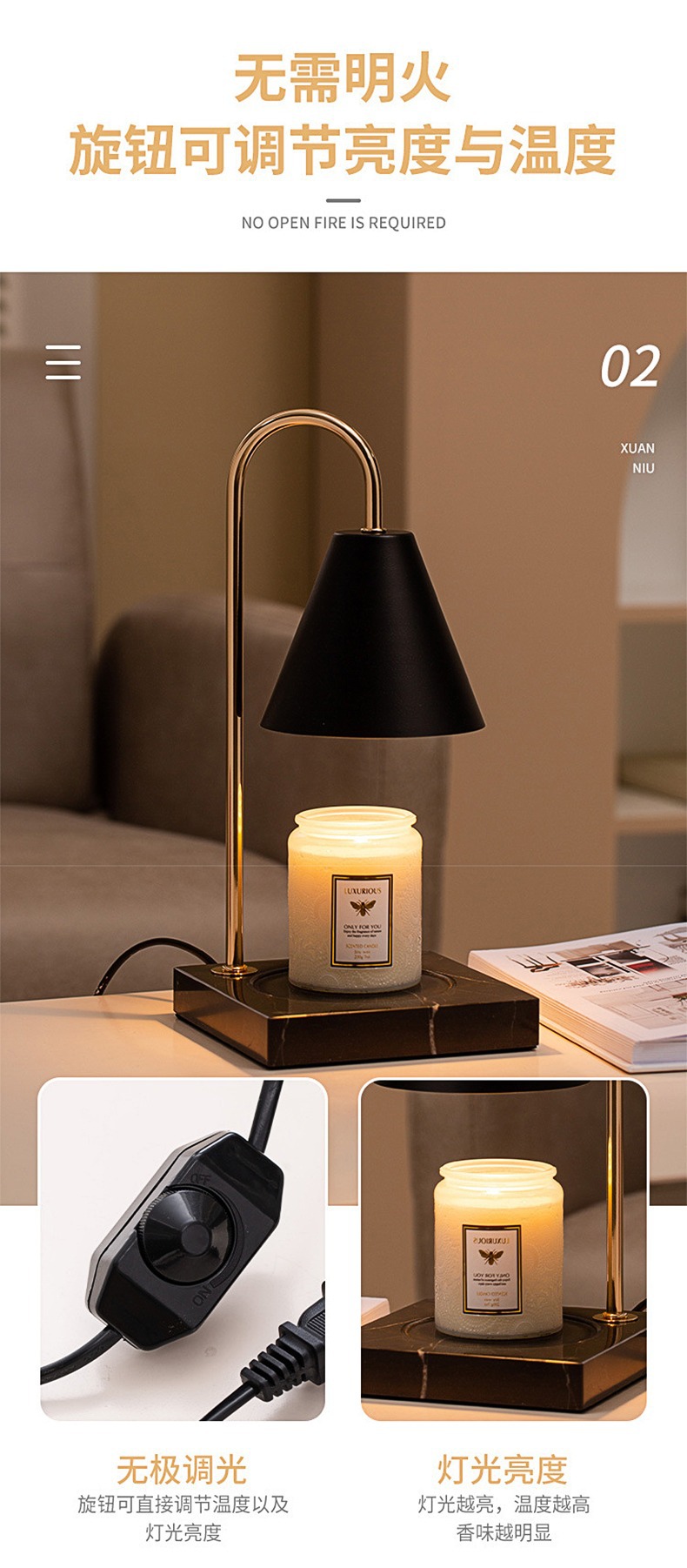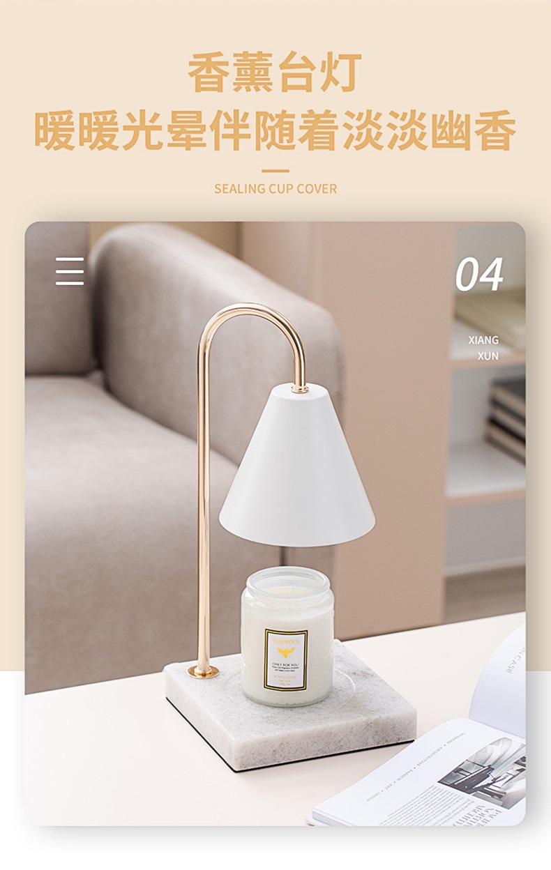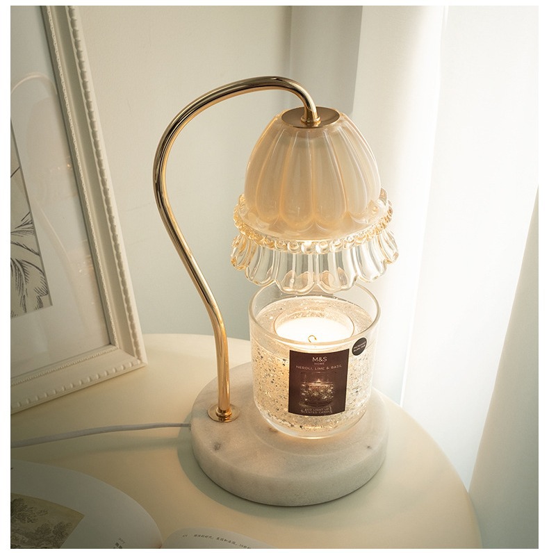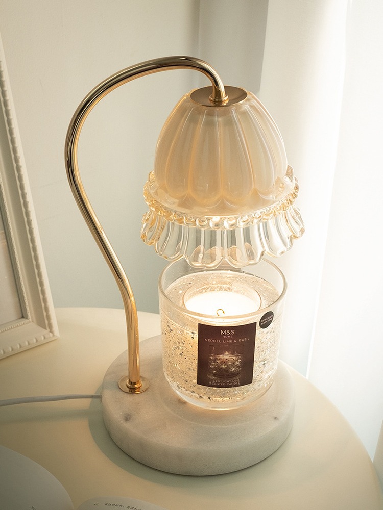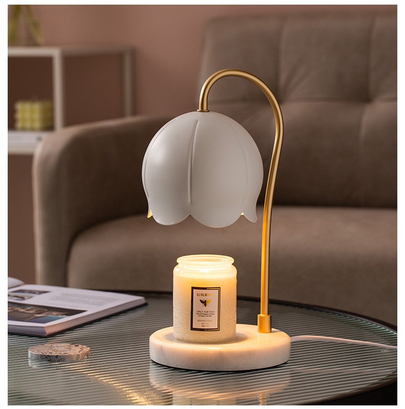 简约创意融蜡灯铃兰大理石香薰灯花朵定时轻奢水泥复古蜡烛灯台灯
