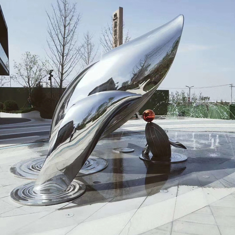 大型不锈钢雕塑厂家定制抽象景观广场镂空球金属镜面月亮圆环浪花