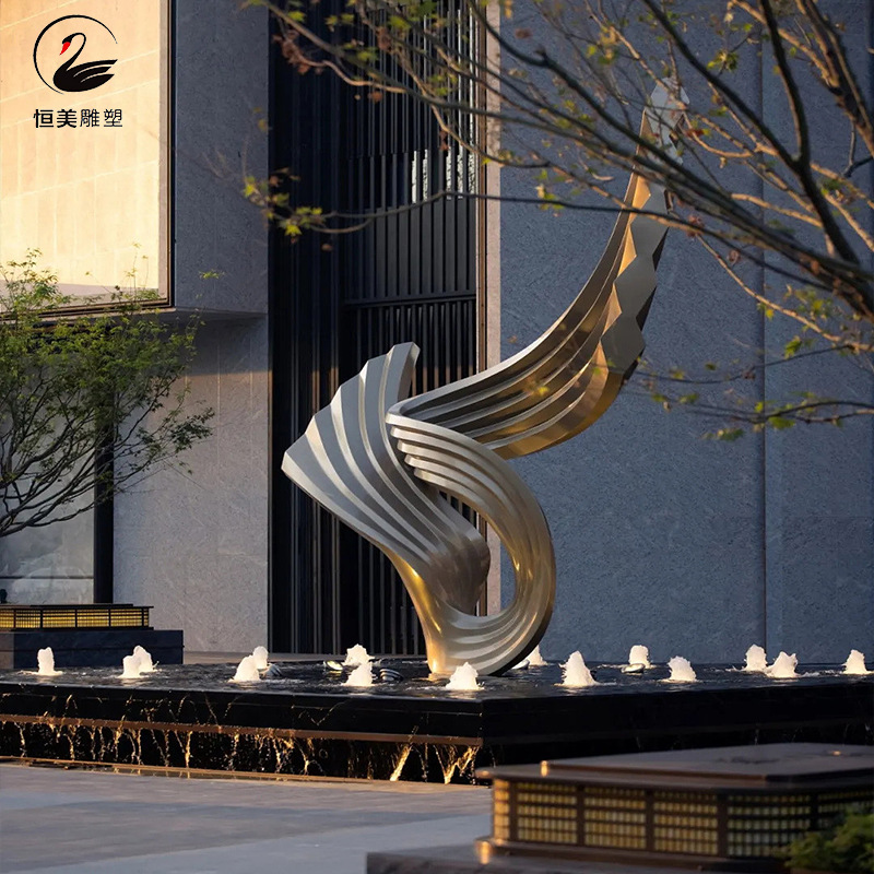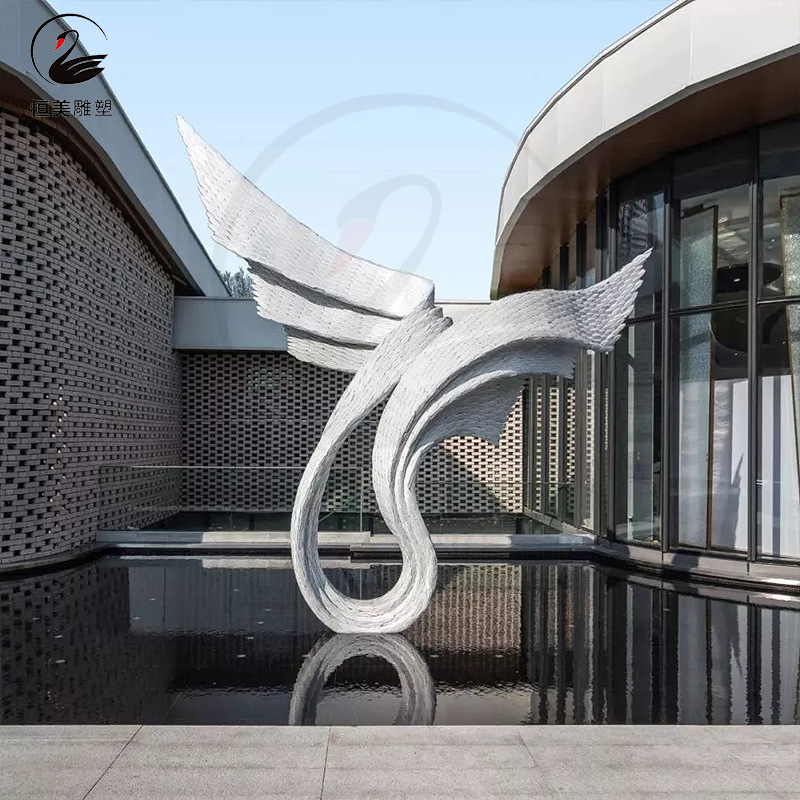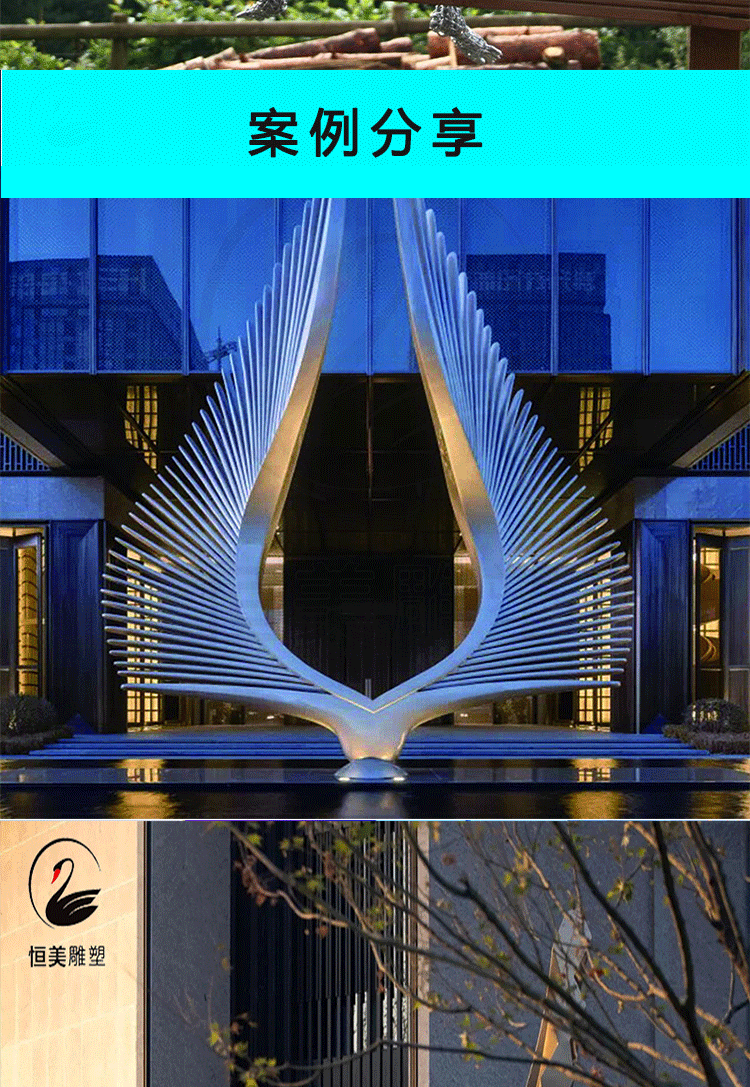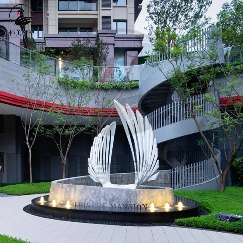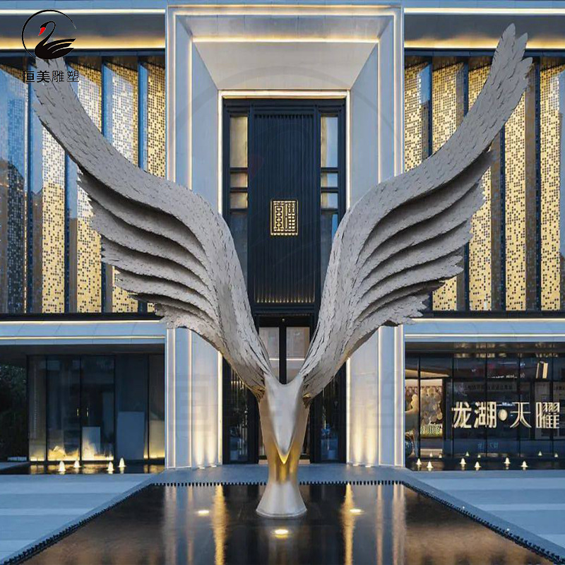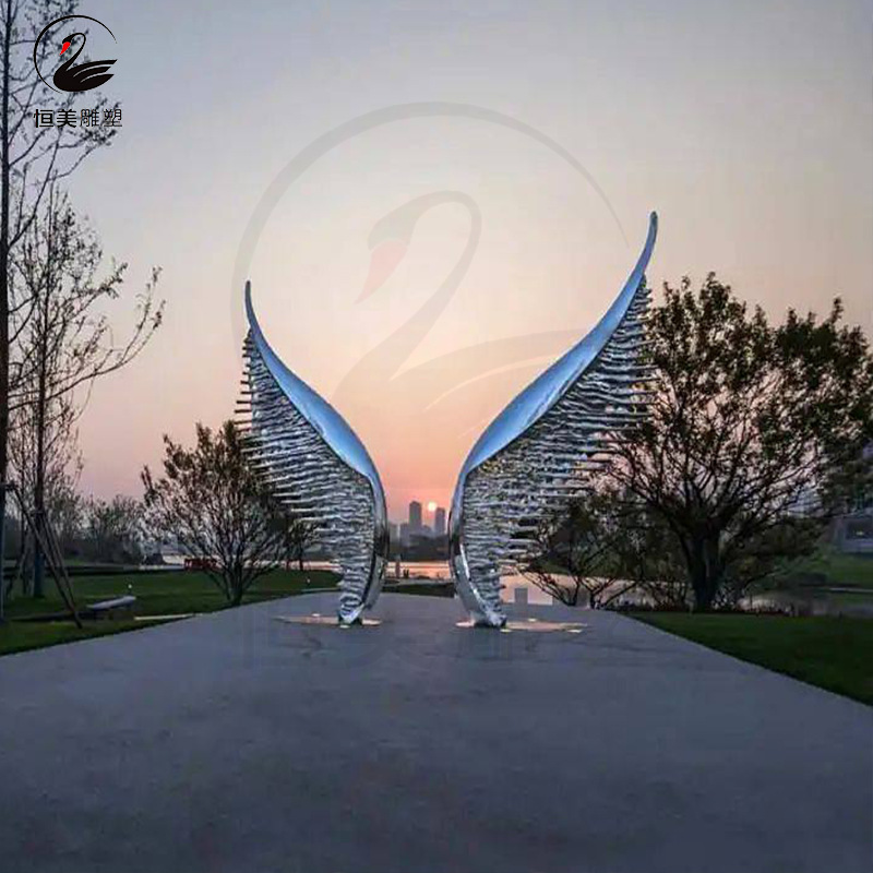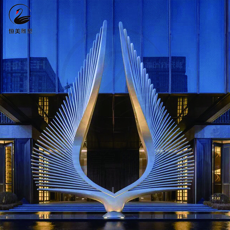 大型不锈钢翅膀雕塑户外校园林抽象异形发光羽翼景观艺术落地摆件