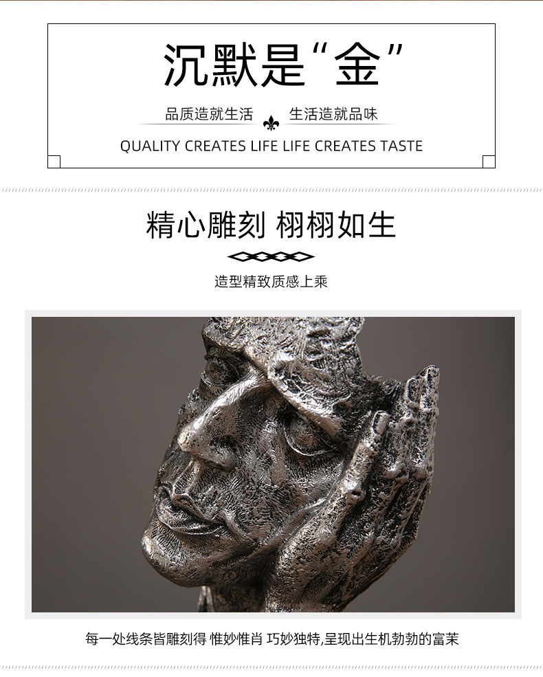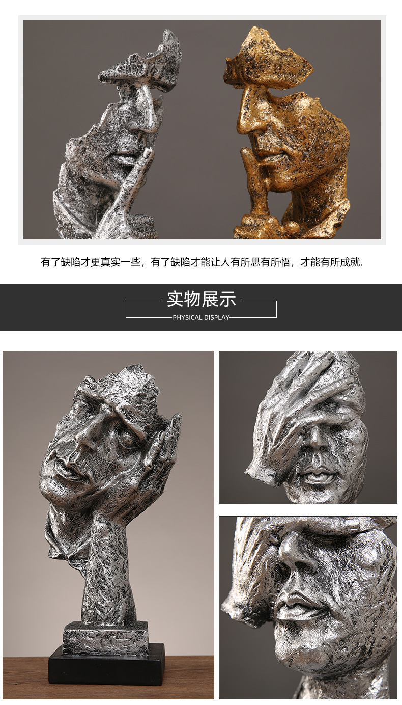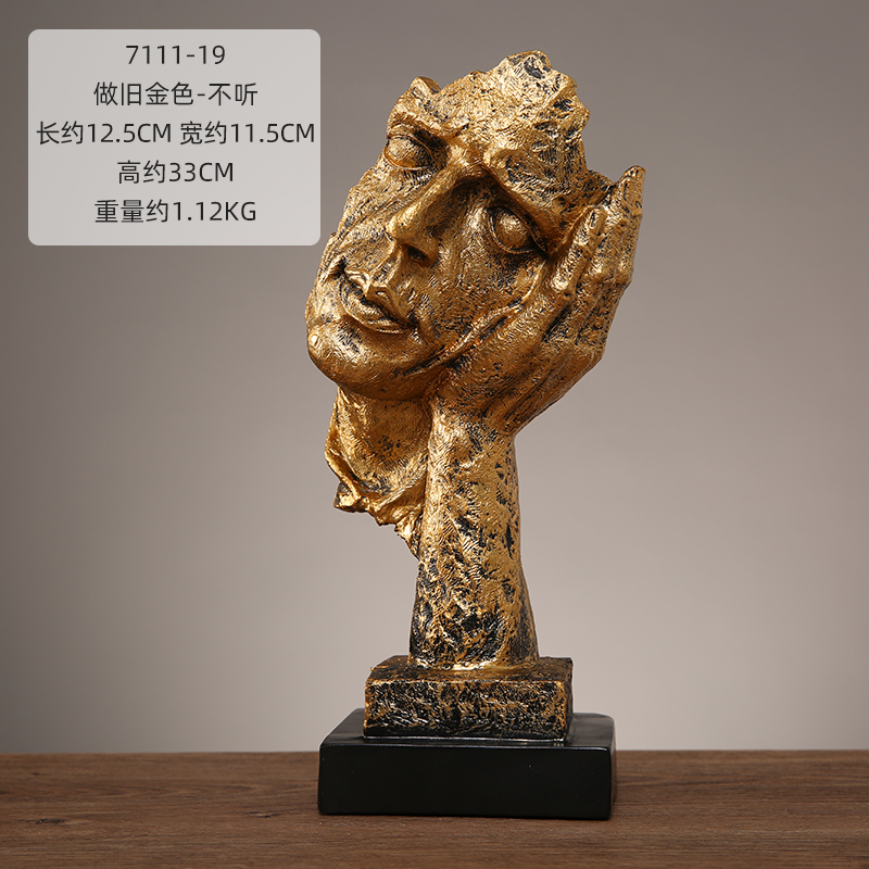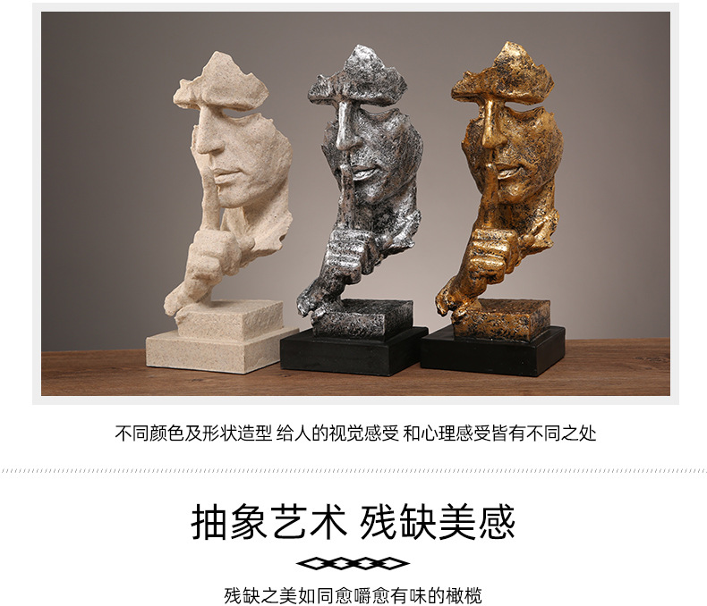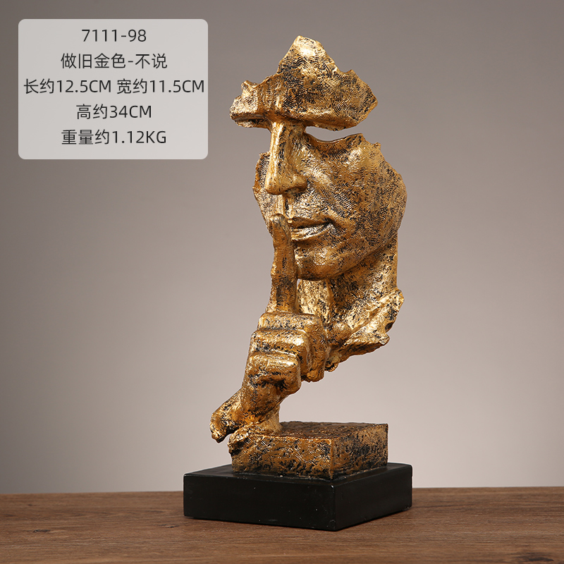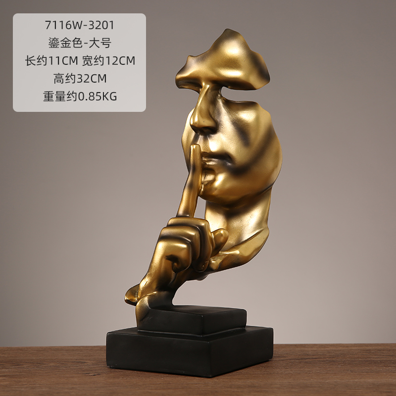 抽象艺术客厅轻奢摆件办公室沉默是金雕塑酒柜玄关桌面家居装饰品