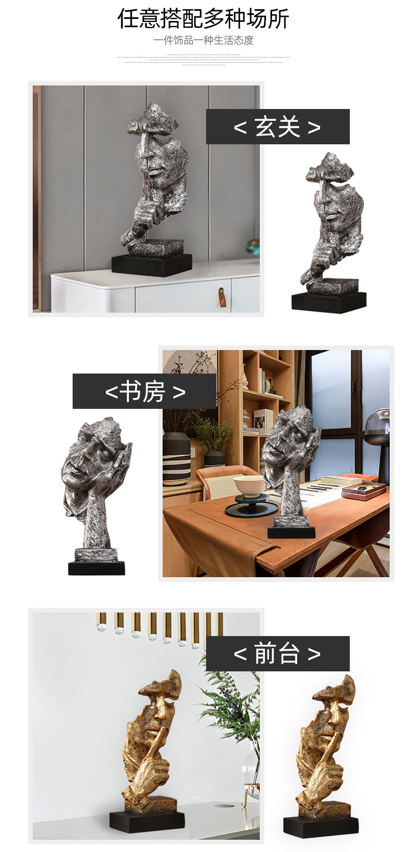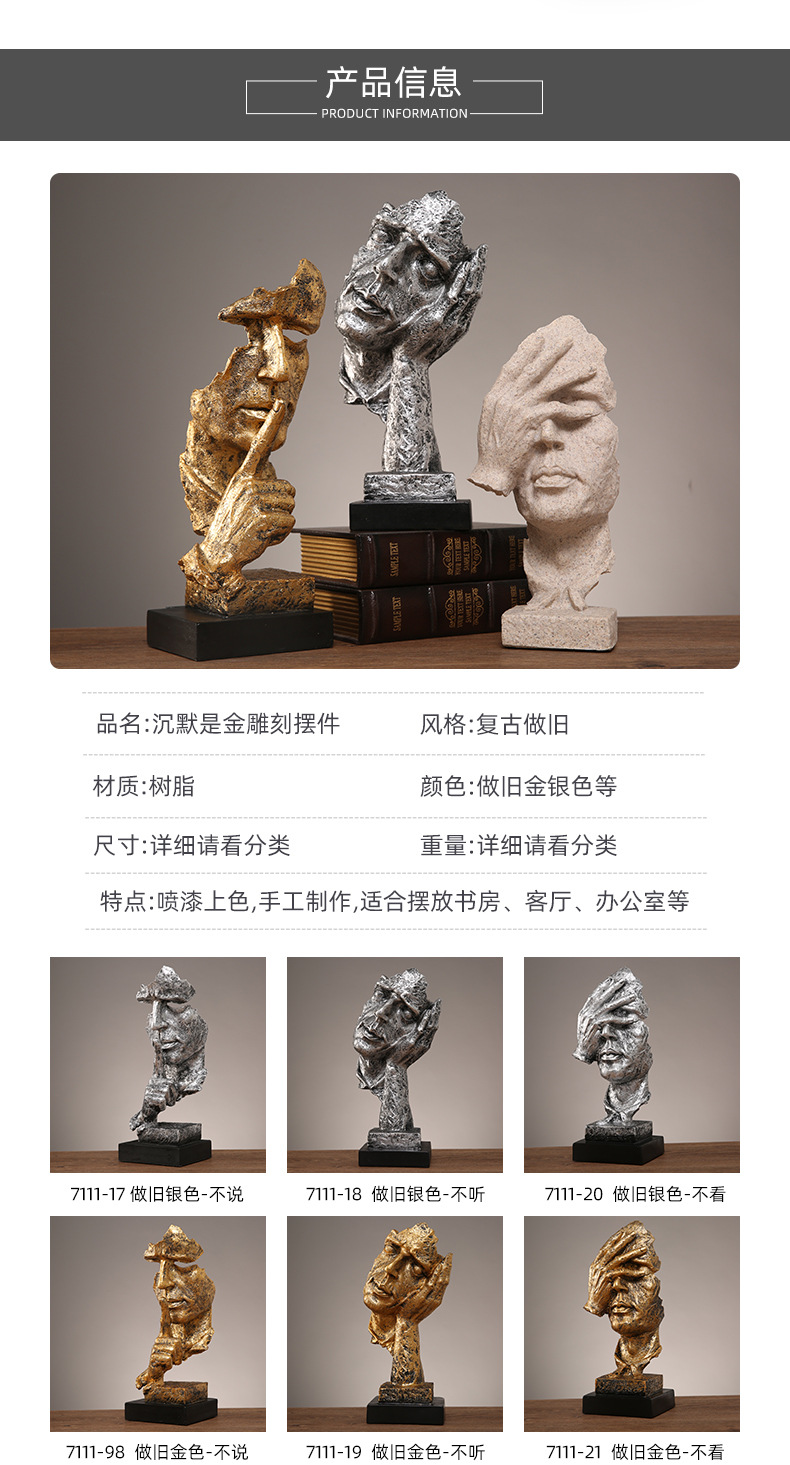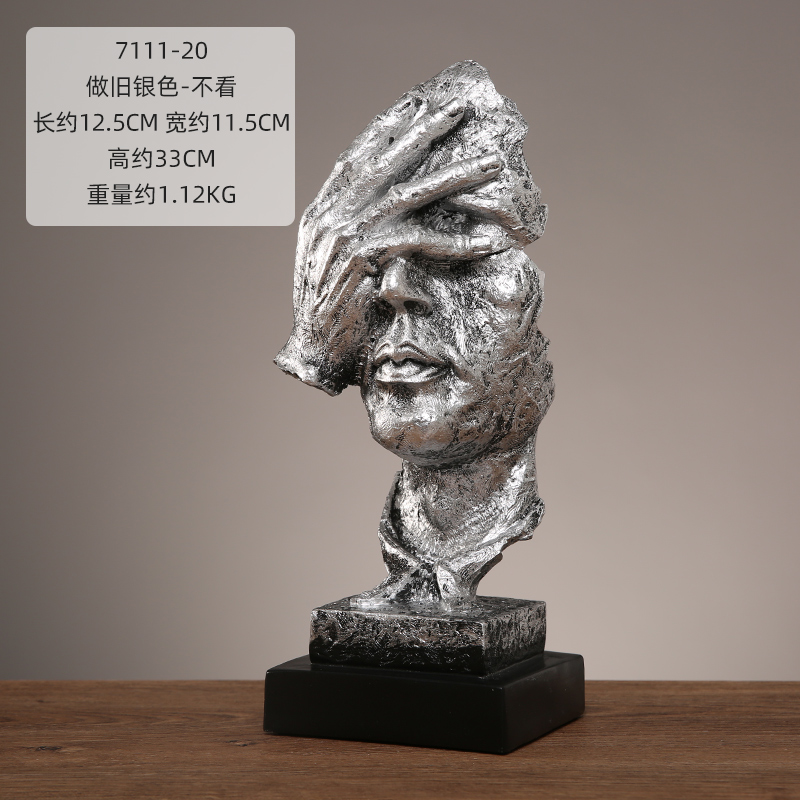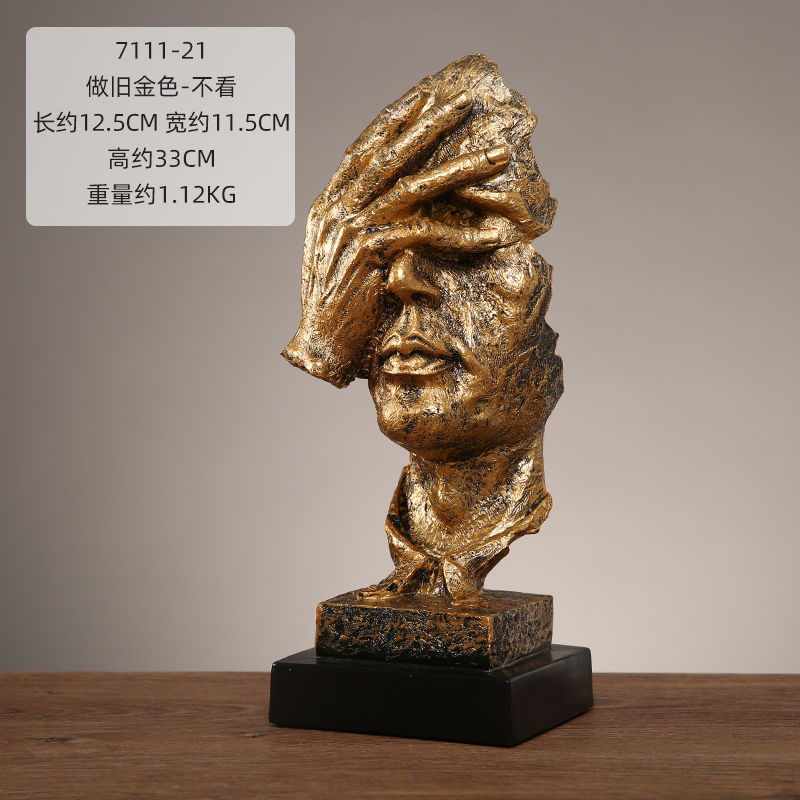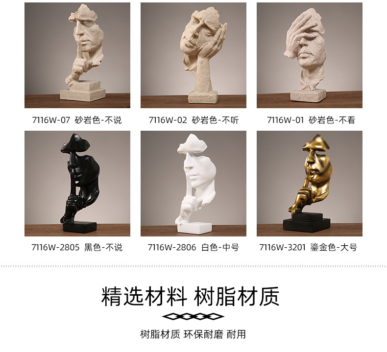抽象艺术客厅轻奢摆件办公室沉默是金雕塑酒柜玄关桌面家居装饰品