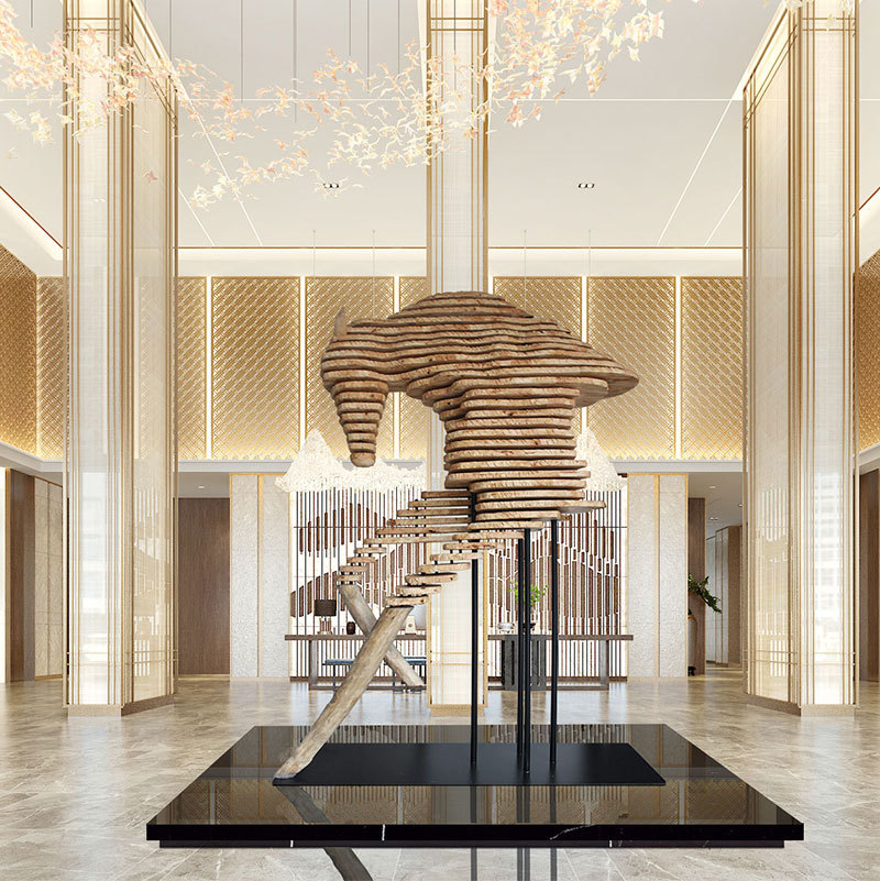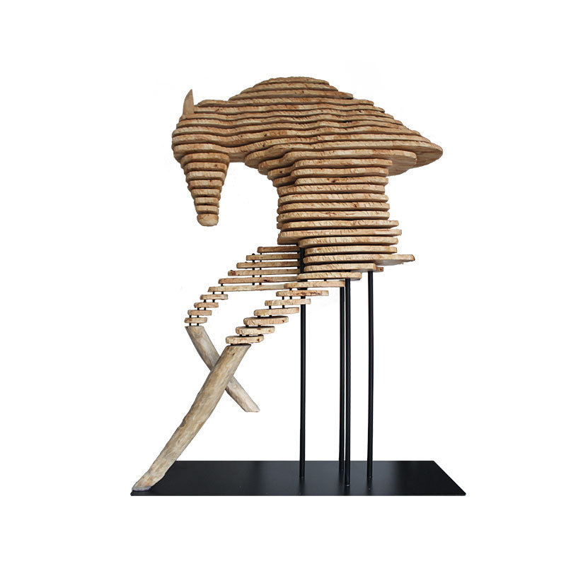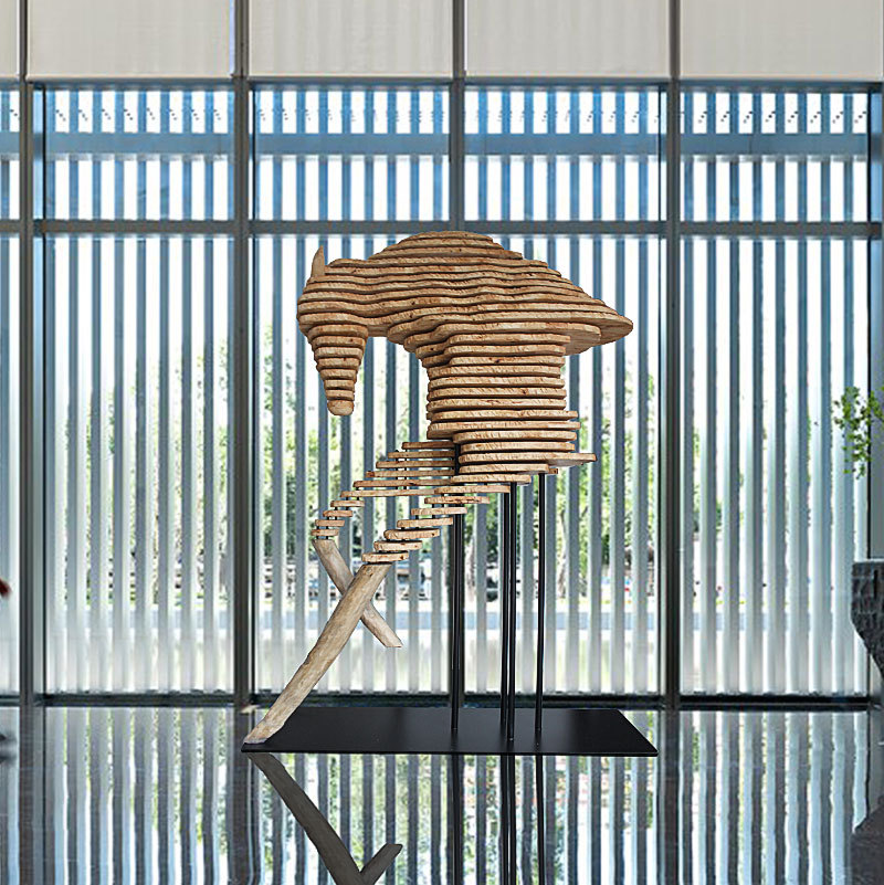 雕塑厂售楼处酒店大堂落地马头装饰雕塑 新中式抽象木质雕塑摆件