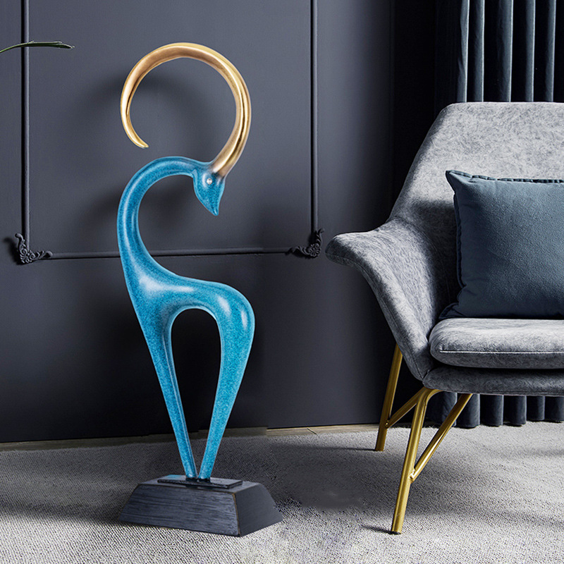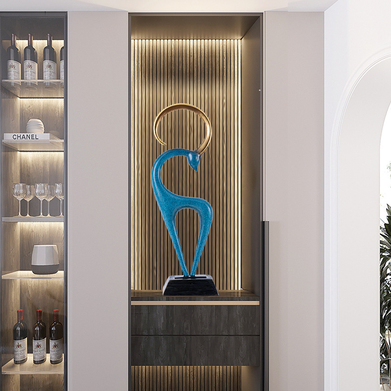 北欧轻奢抽象落地摆件艺术鹿雕塑工艺品客厅电视柜样板房软装摆设