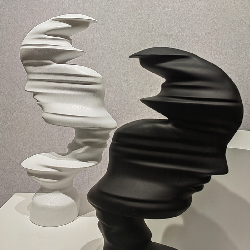 现代简约抽象黑白人脸雕塑样板间客厅玄关书房树脂人物艺术品摆件