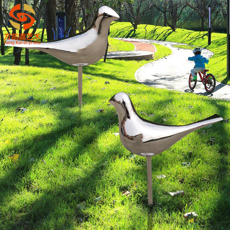 户外不锈钢镜面鸽子雕塑海鸥鸽子花园园林景观摆件酒店草坪装饰品