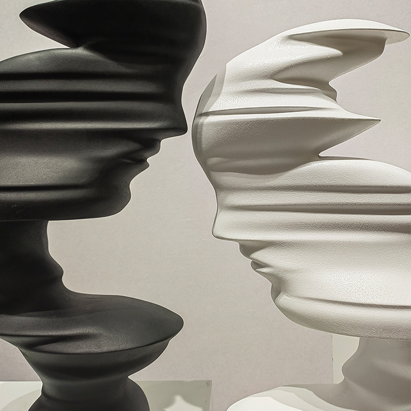 简约抽象脸黑白头像雕塑样板间客厅玄关柜书房树脂人物艺术品摆件