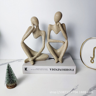 跨境欧式简约抽象人物艺术砂岩雕塑创意家居客厅酒店装饰品小摆件