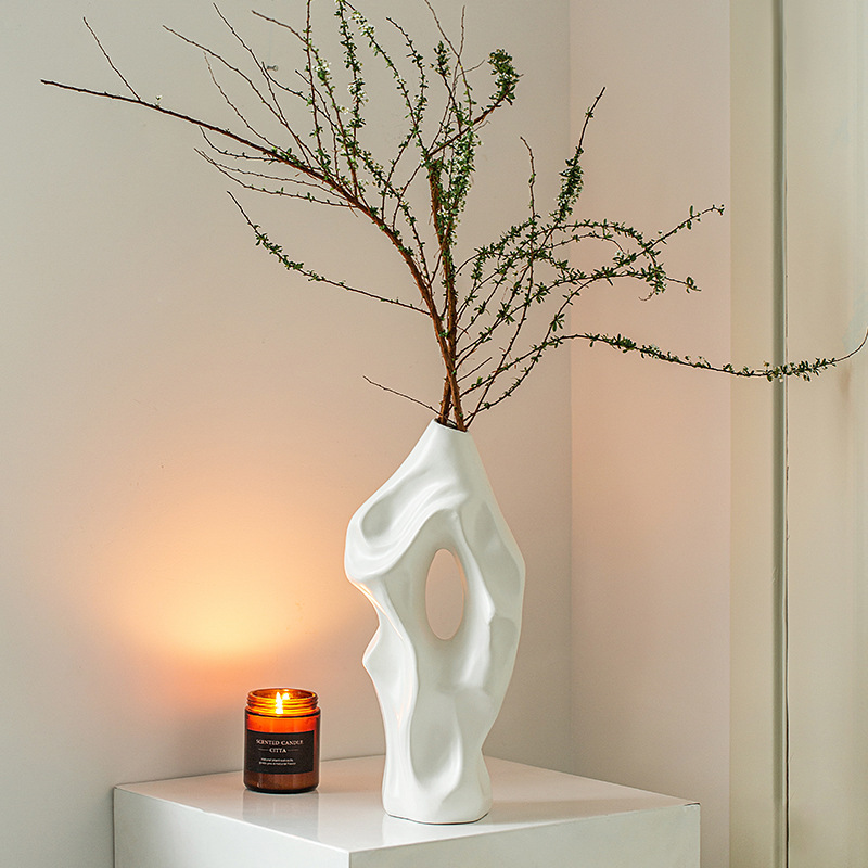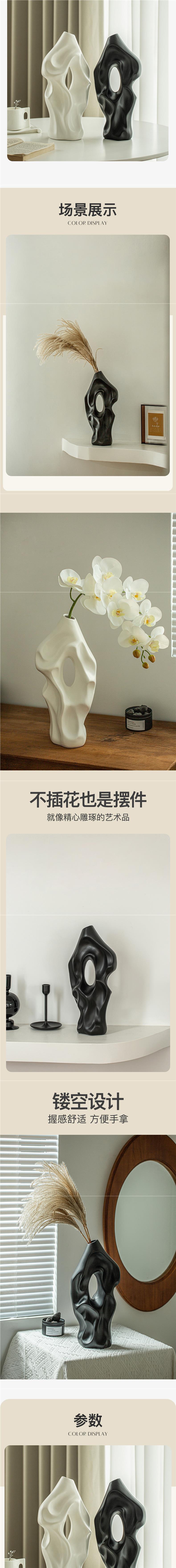KBQ1中古抽象艺术白色陶瓷雕塑摆件花瓶装饰品干花桌面诧寂风现代