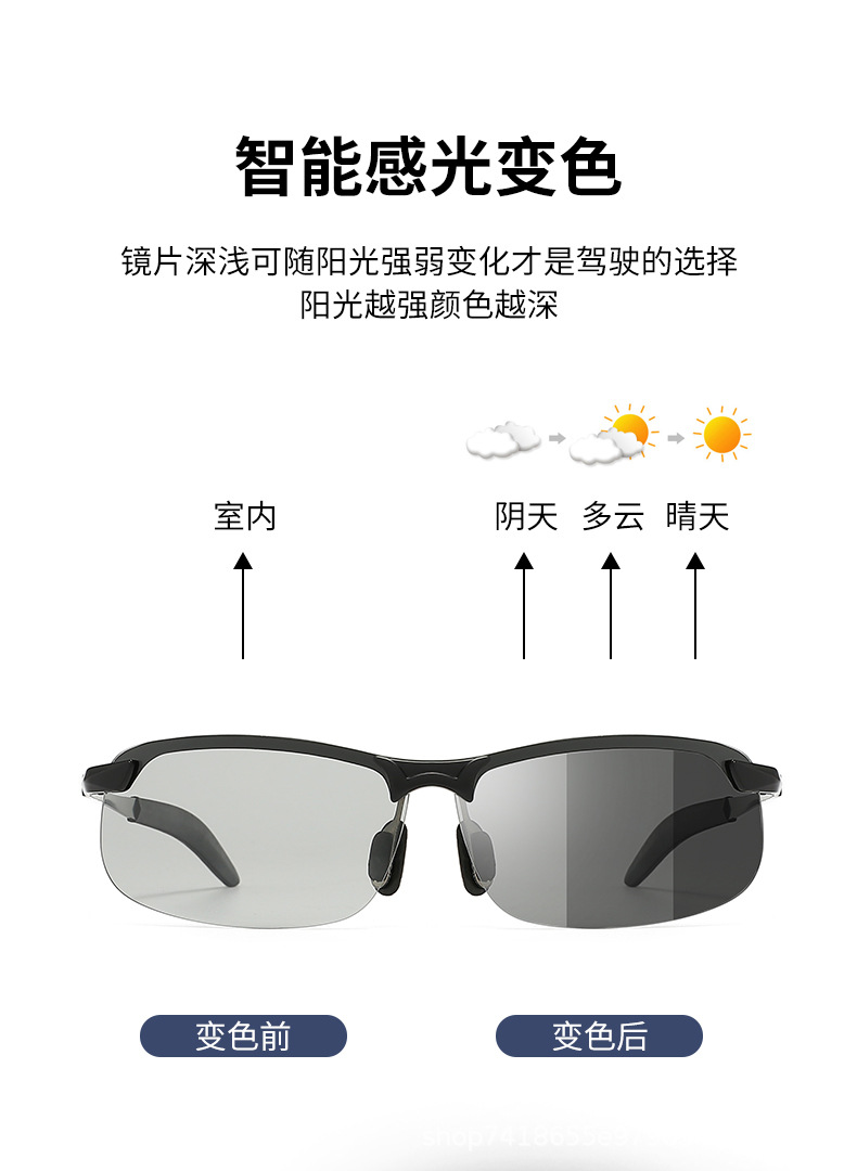 夏季锌合金太阳镜智能感光变色户外钓鱼骑行休闲日夜两用墨镜批发