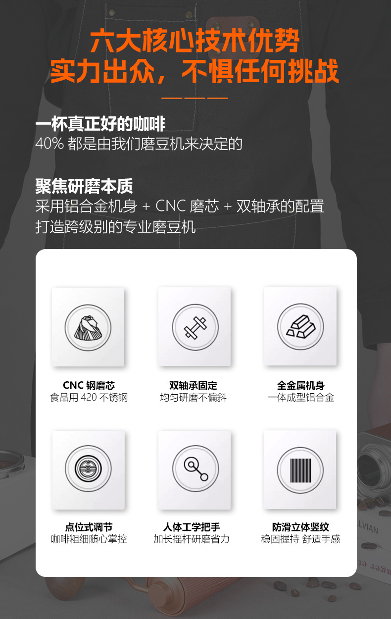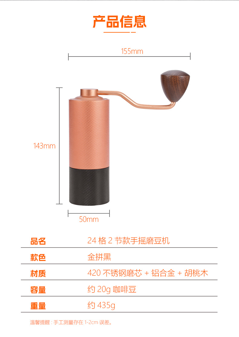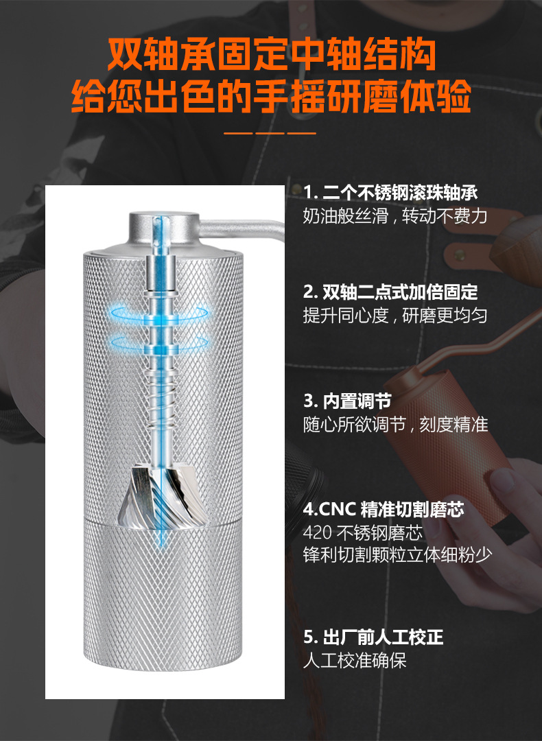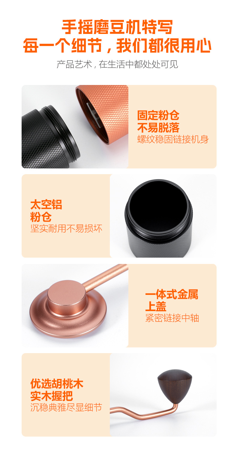 手摇咖啡磨豆机 迷你家用手冲咖啡研磨器具随行手动 CNC六星磨芯