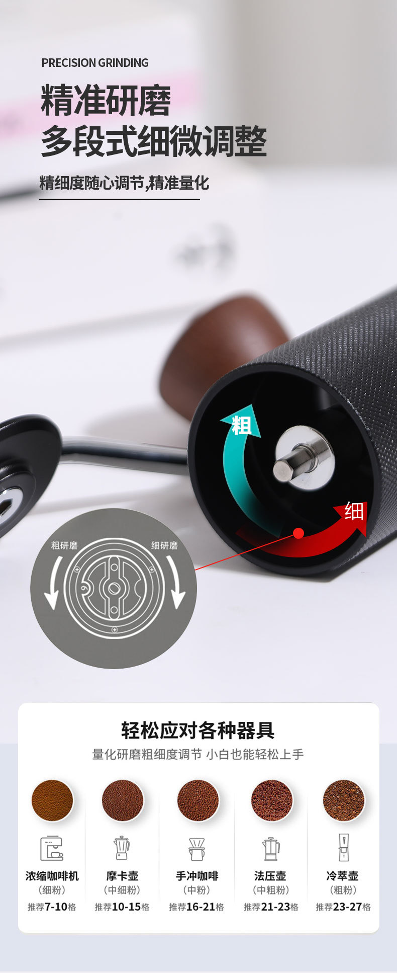 品创手摇磨豆机咖啡豆手动研磨机不锈钢磨芯磨豆器手磨咖啡机跨境