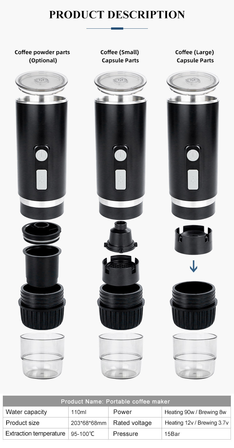便携式咖啡机户外迷你冲泡研磨自动加热浓缩冲泡器礼品印刷logo