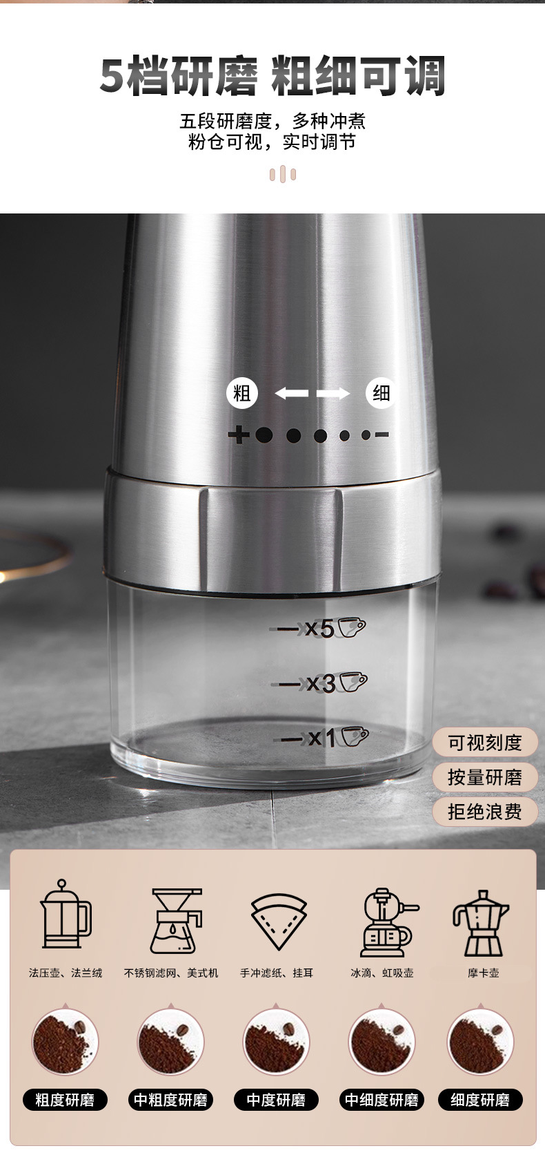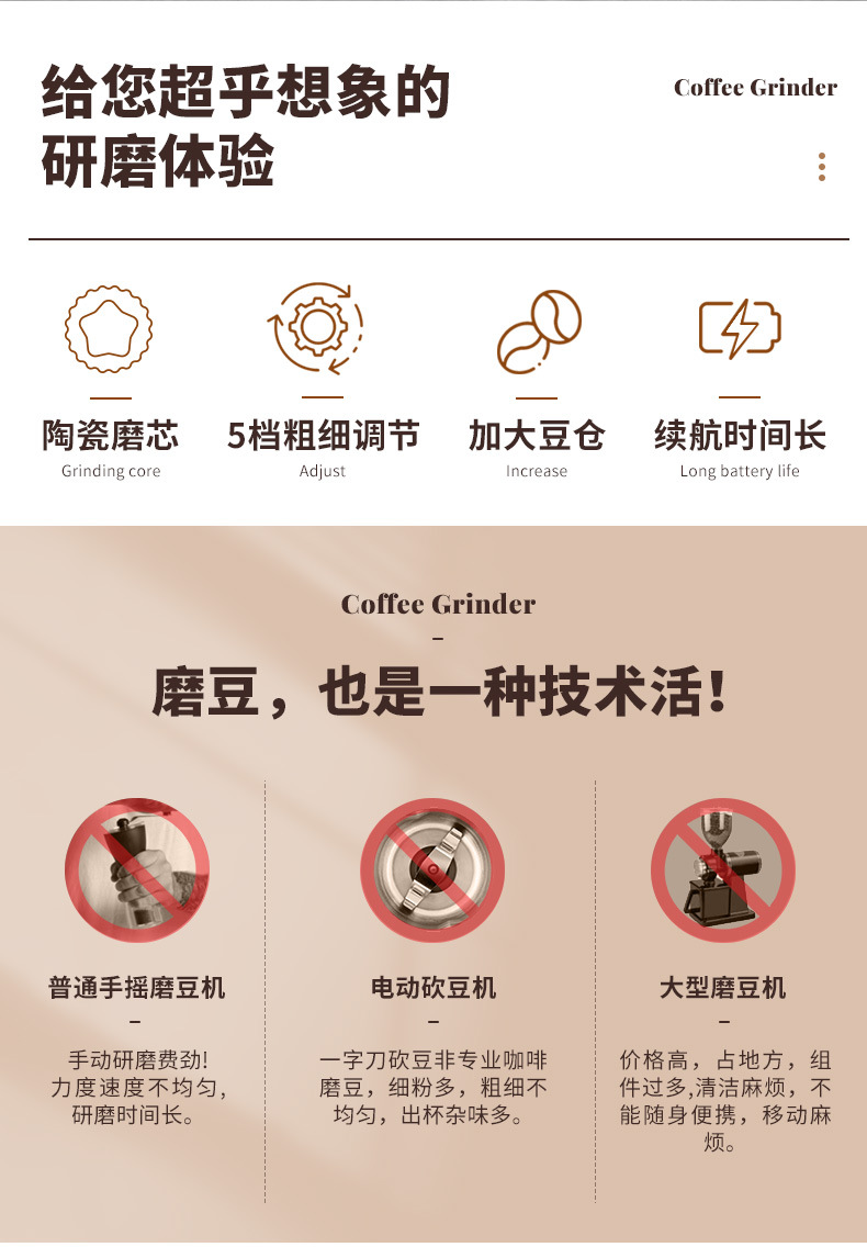 外调电动咖啡研磨机磨豆机家用研磨器全自动磨粉器户外小型磨豆机