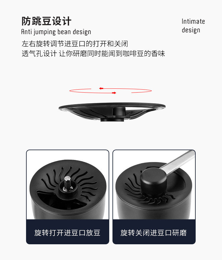 1PKN黑色咖啡豆研磨机器手摇磨豆机不锈钢手动磨粉机家用小型便携