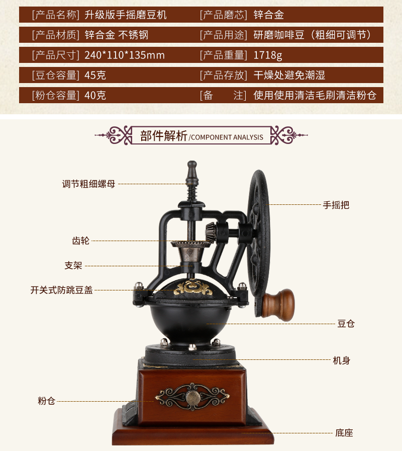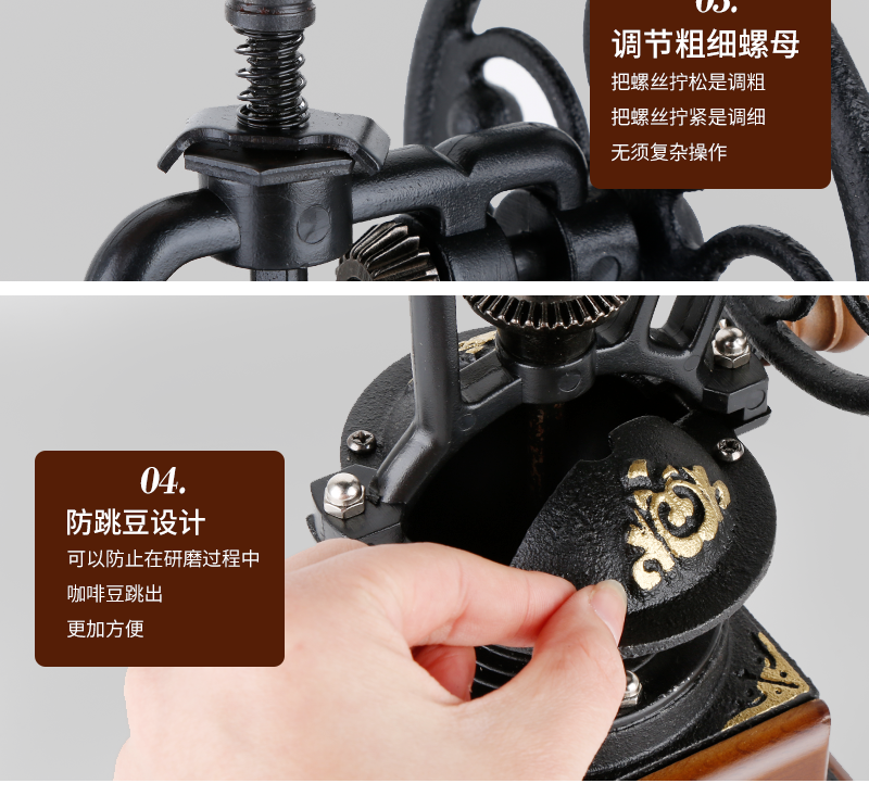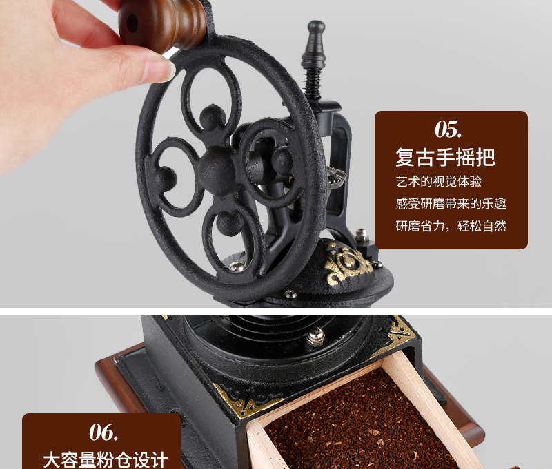 RI0T家用咖啡豆研磨机 手摇咖啡磨粉机 手摇磨豆机 大手轮磨豆机