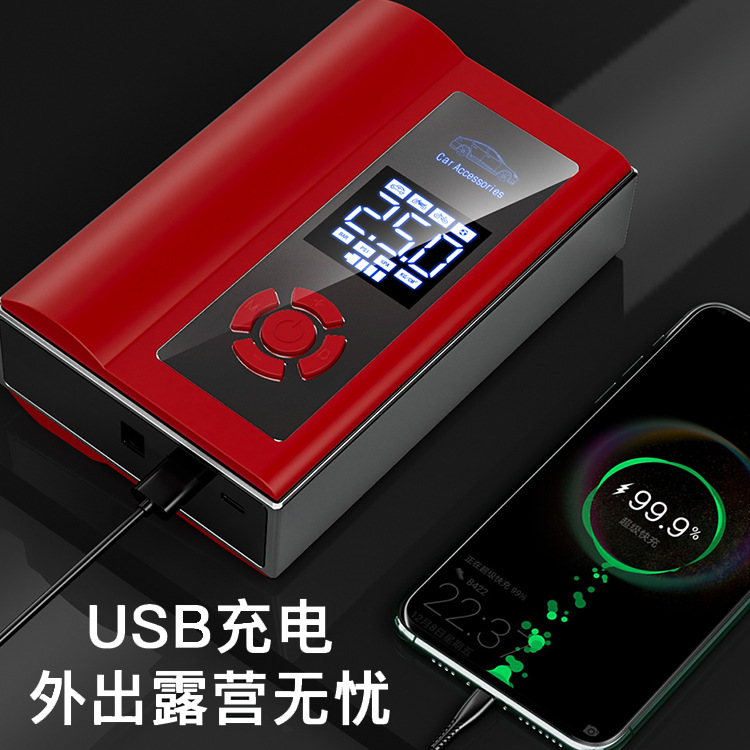 汽车启动应急电源车载充气泵一体机多功能电瓶打火启动搭电神器