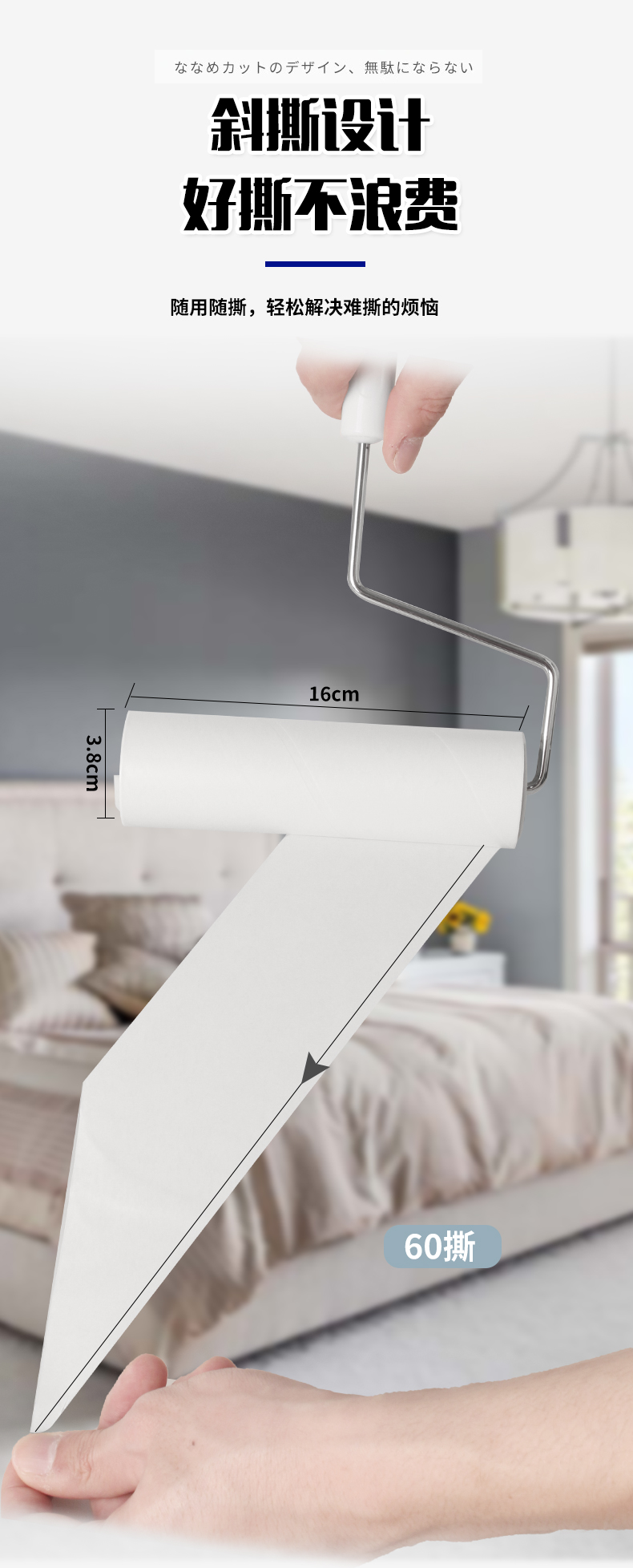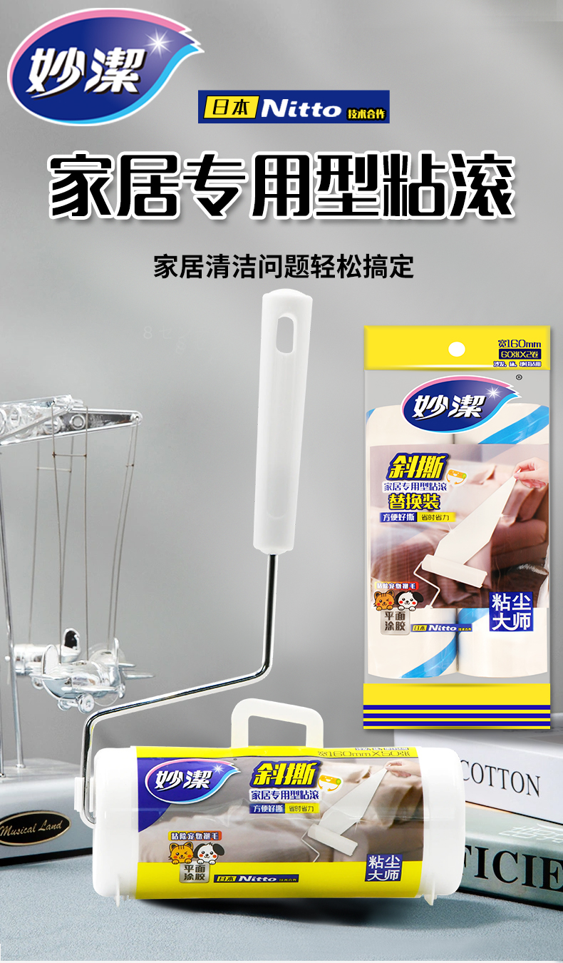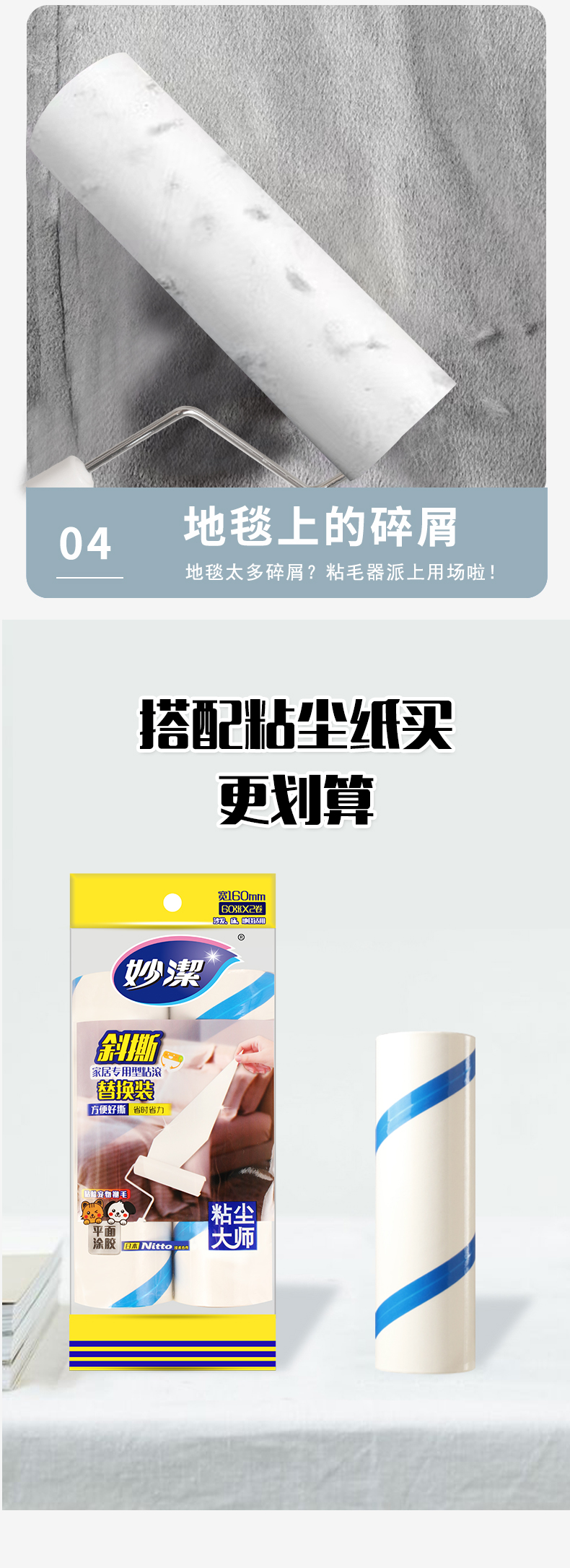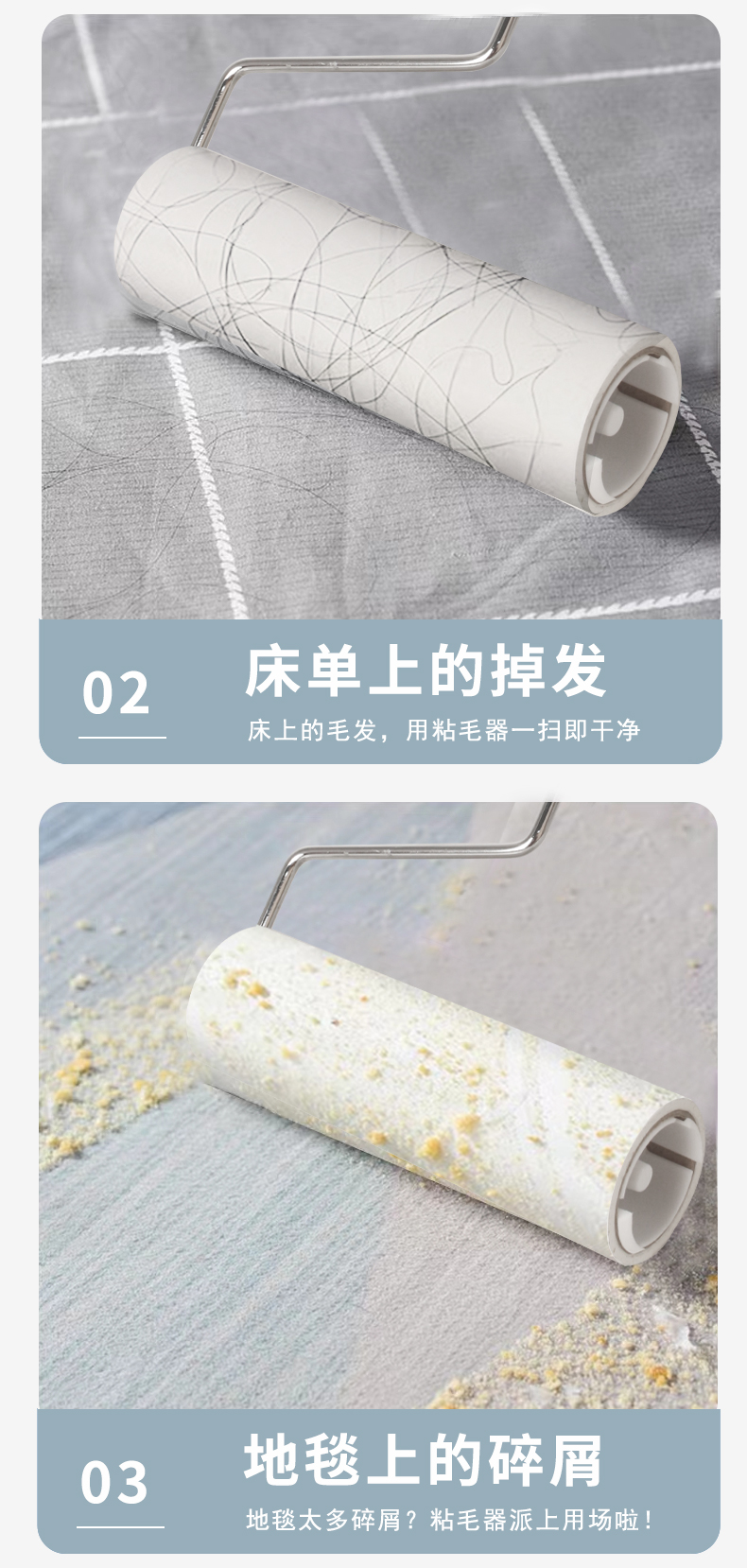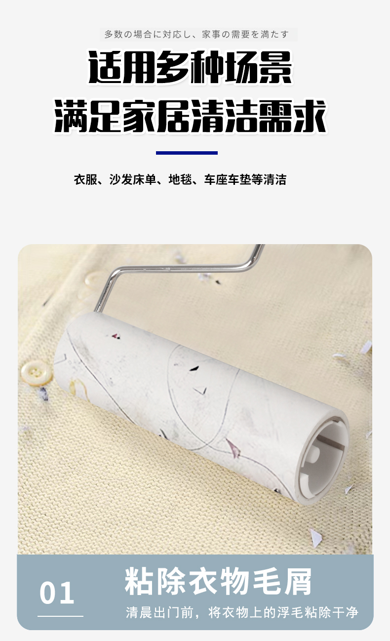 9LA3粘毛器粘尘纸床上滚轮可撕式大号衣地毯床垫除灰16cm批发