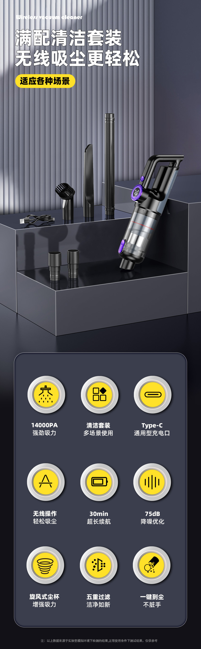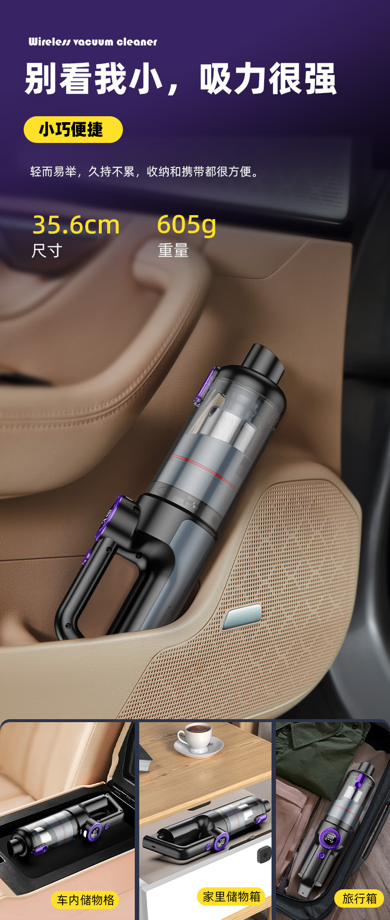 跨境无线吸尘器超大吸力无刷大功率便携式旋风手持家用车载吸尘器