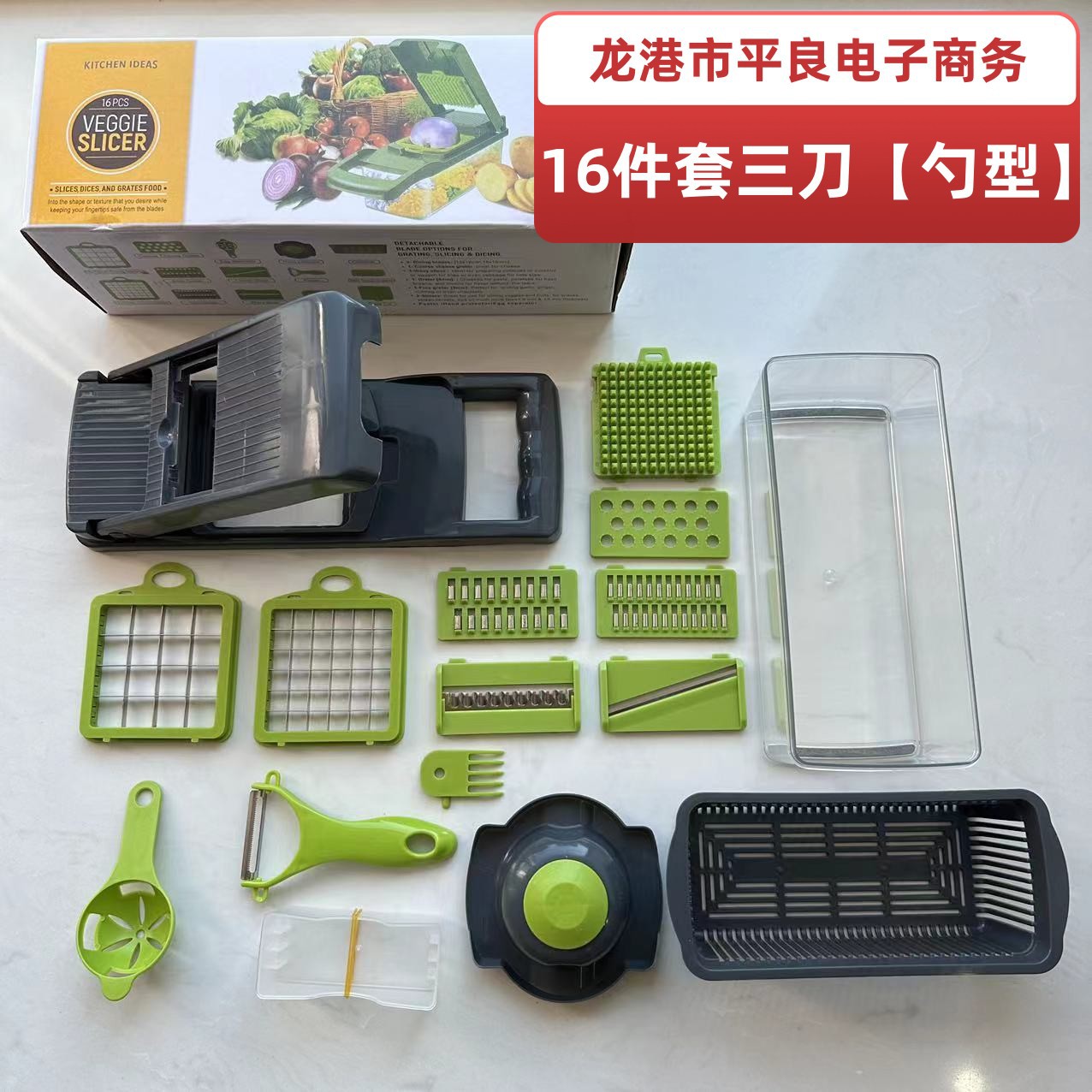 跨境多功能收纳切菜神器厨房切片机擦丝器切丁器刨丝器切菜器16件