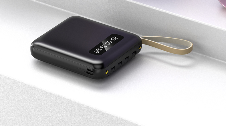 新款自带线便携充电宝 20000mAh数显镜面移动电源带挂绳 LOGO礼品
