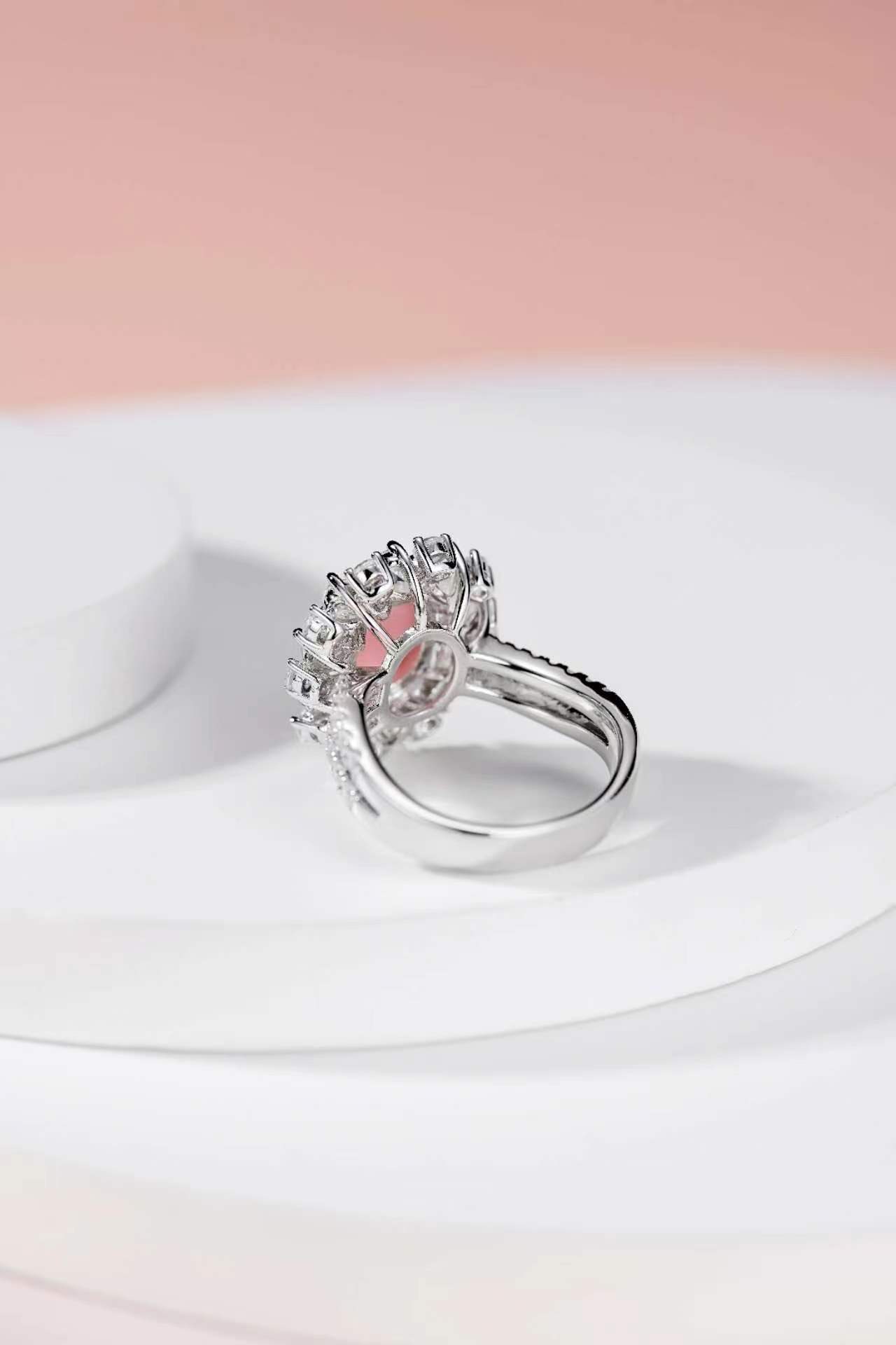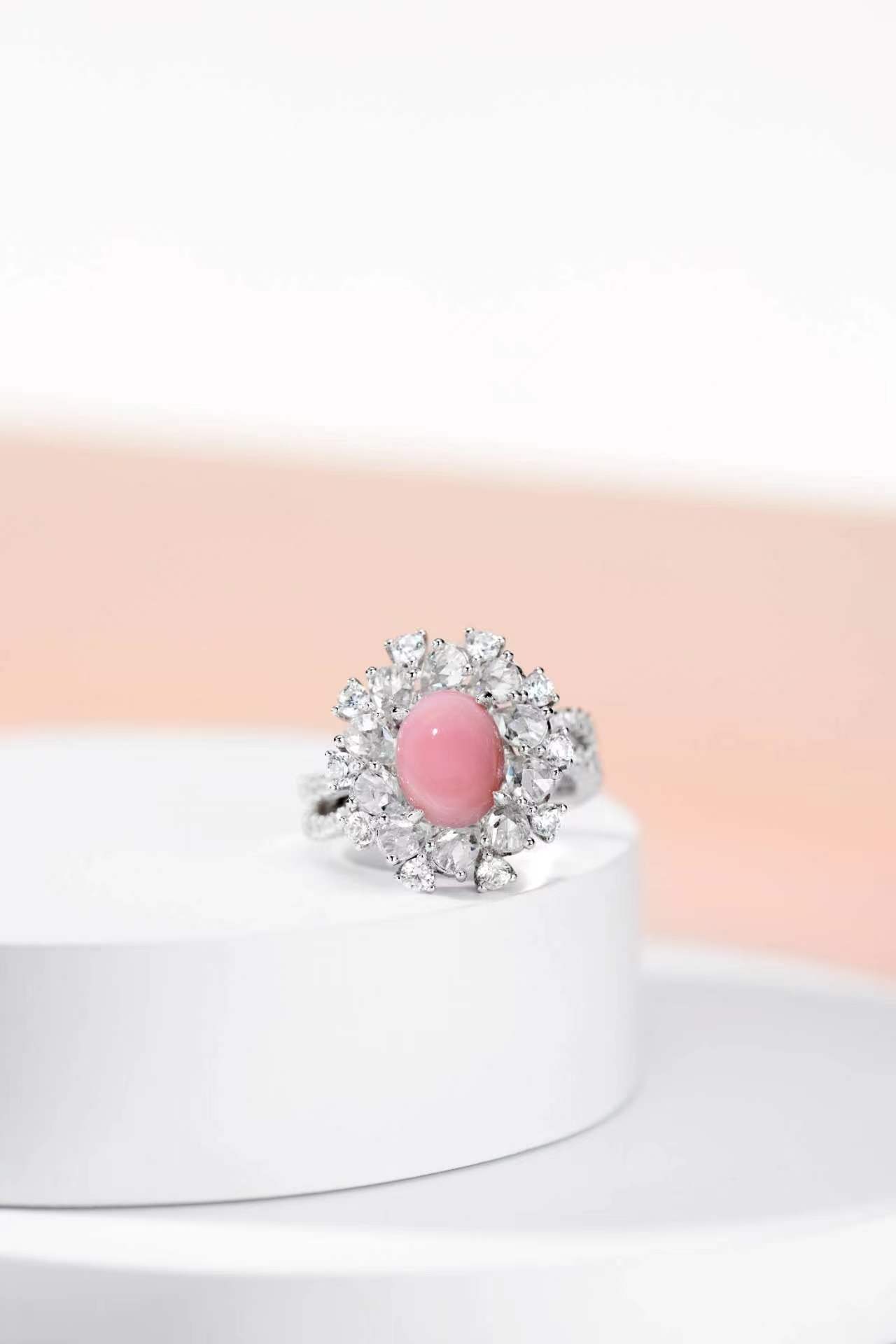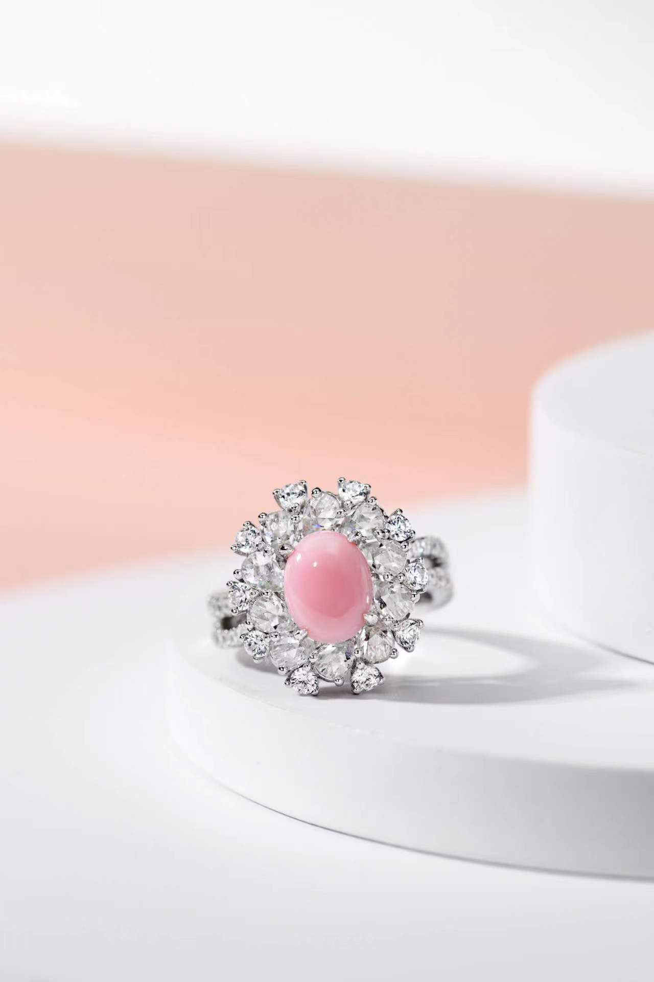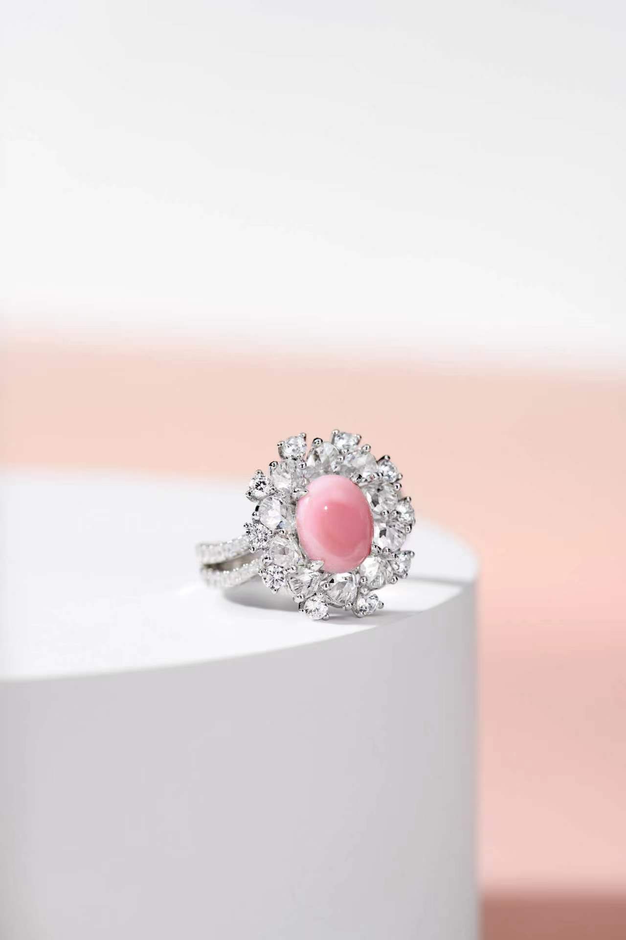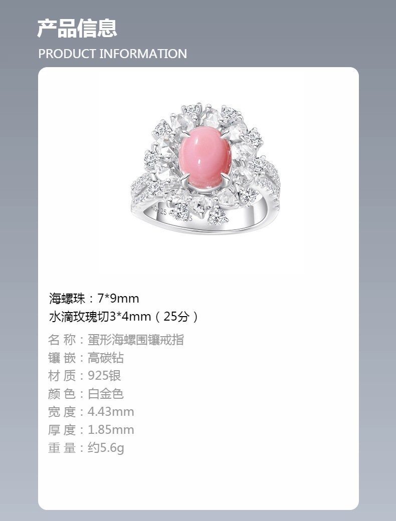 超仙粉嫩稀有天然纹理925银戒指海螺贝珠戒指925银钻石椭圆气质女