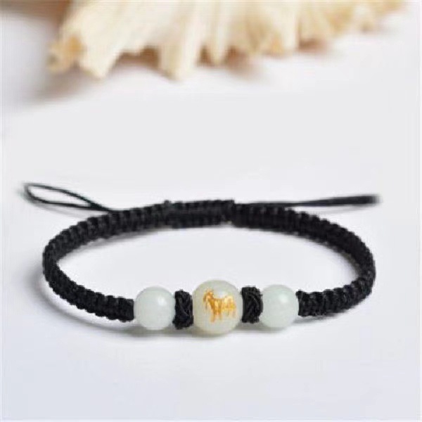 手工编织本命年夜光珠烫金生肖红绳手链夜明珠发光珠十二生肖手绳