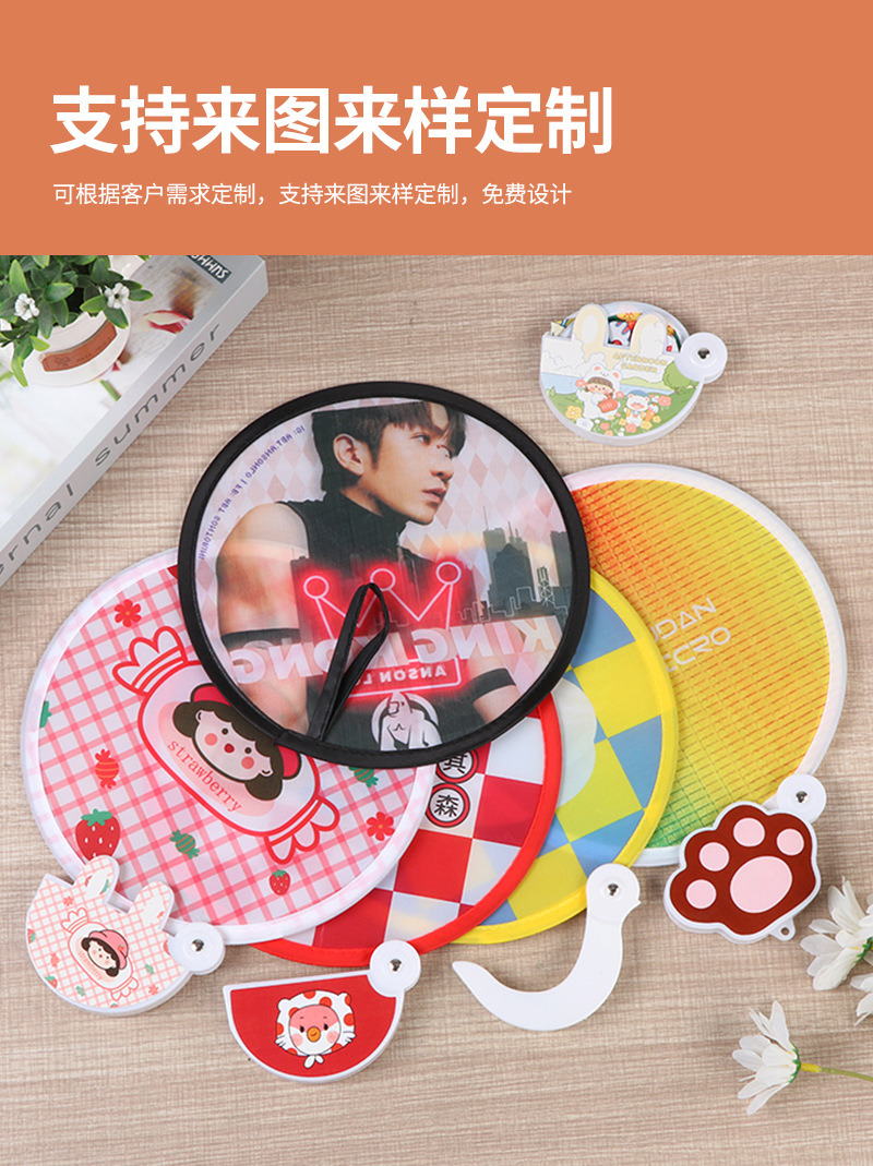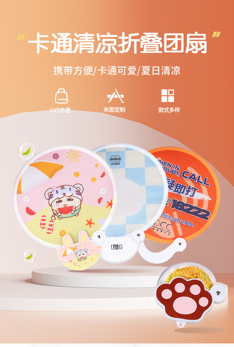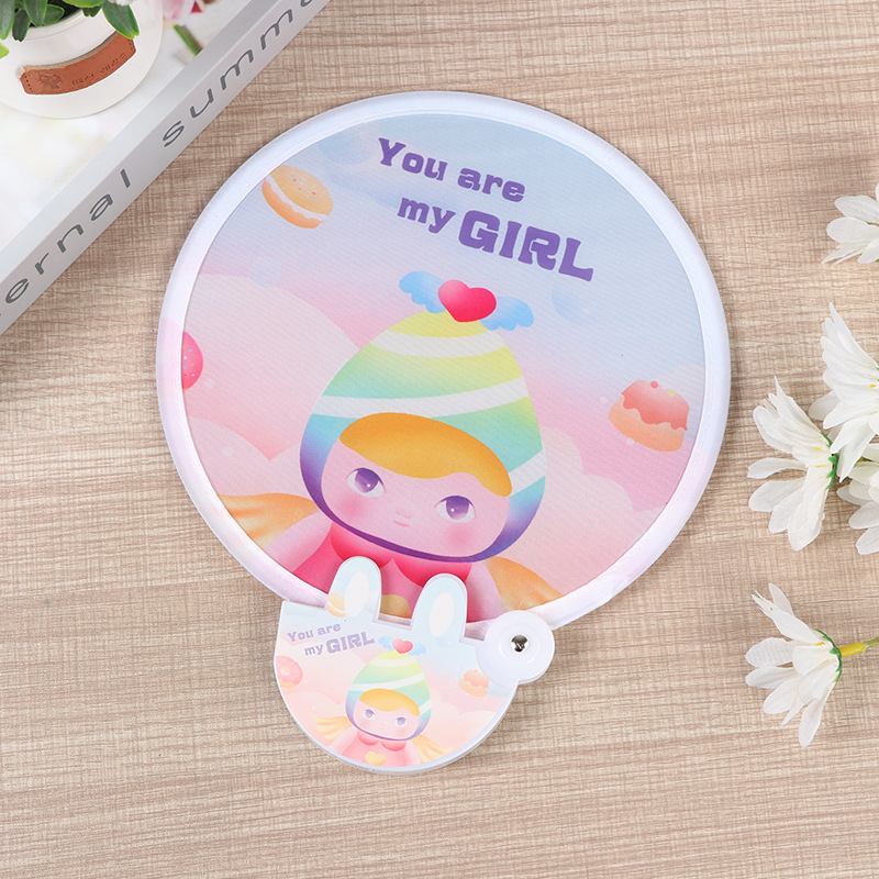 新款可爱卡通团扇迷你布面折扇口袋圆扇儿童便携随身折叠扇子批发