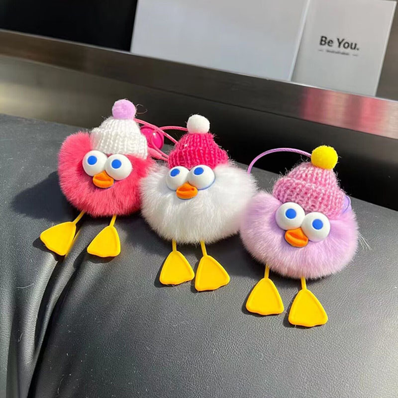 混批仿毛獭兔毛小鸭子钥匙扣挂件小礼品公仔包包挂饰毛绒挂件批发