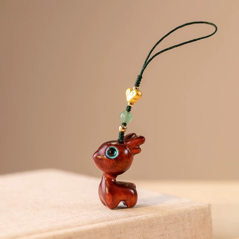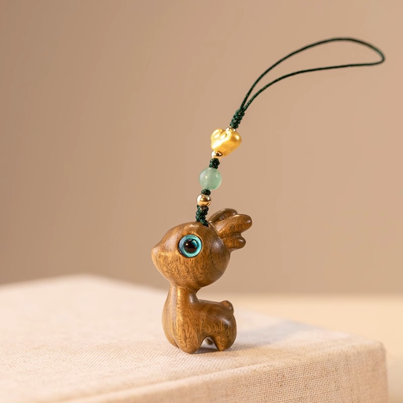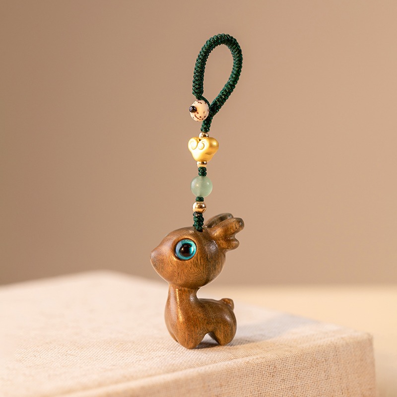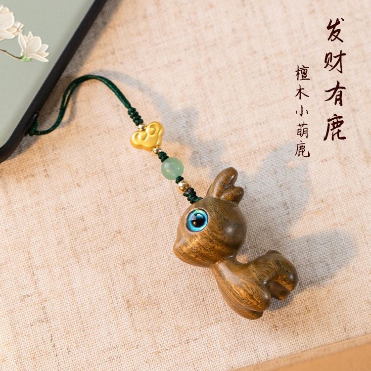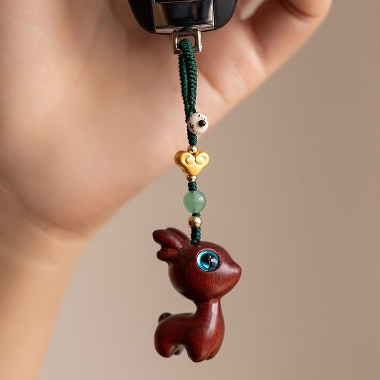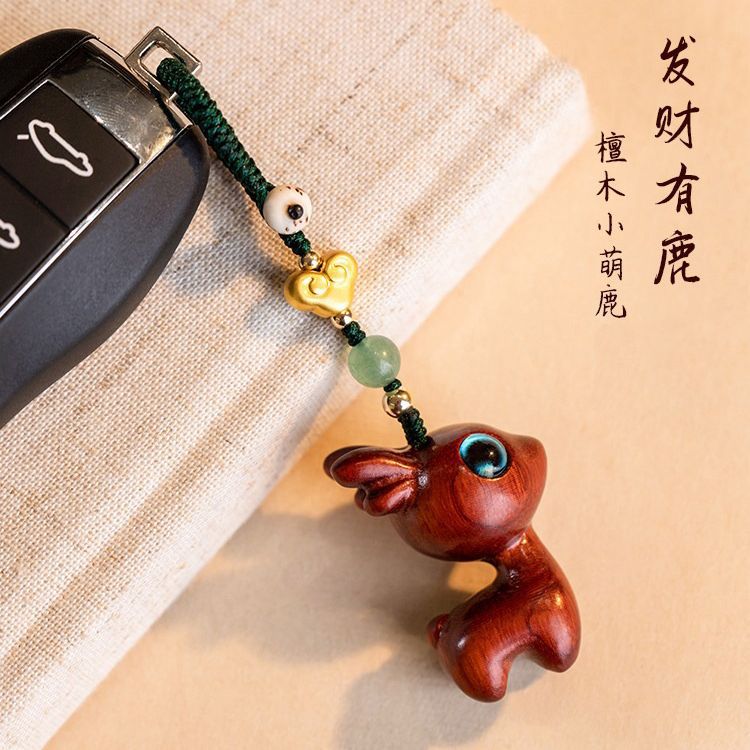 一路平安檀木小鹿汽车钥匙扣挂件男女可爱发财有鹿手机链创意礼物