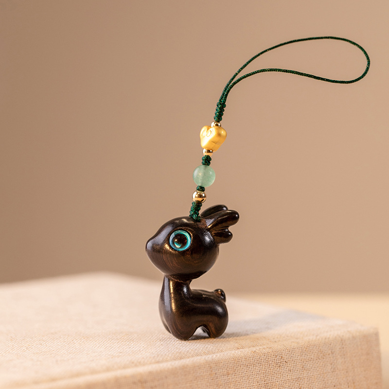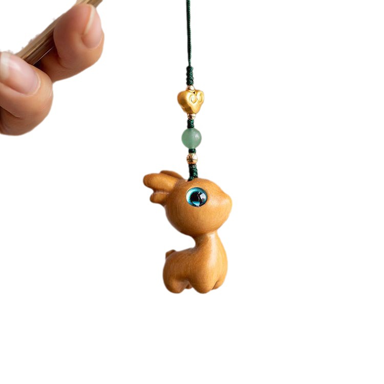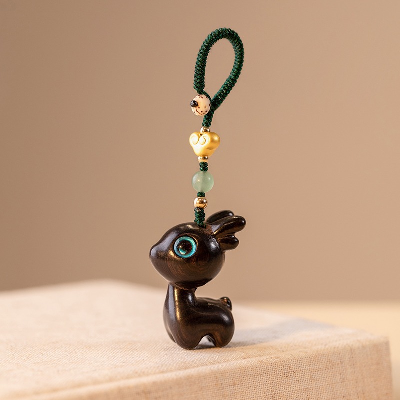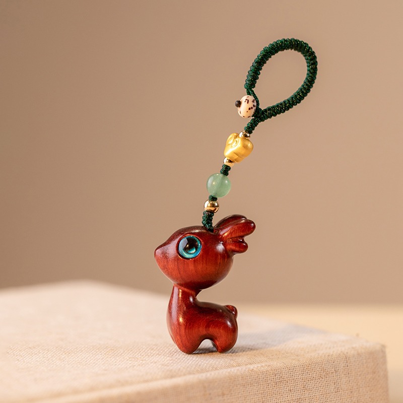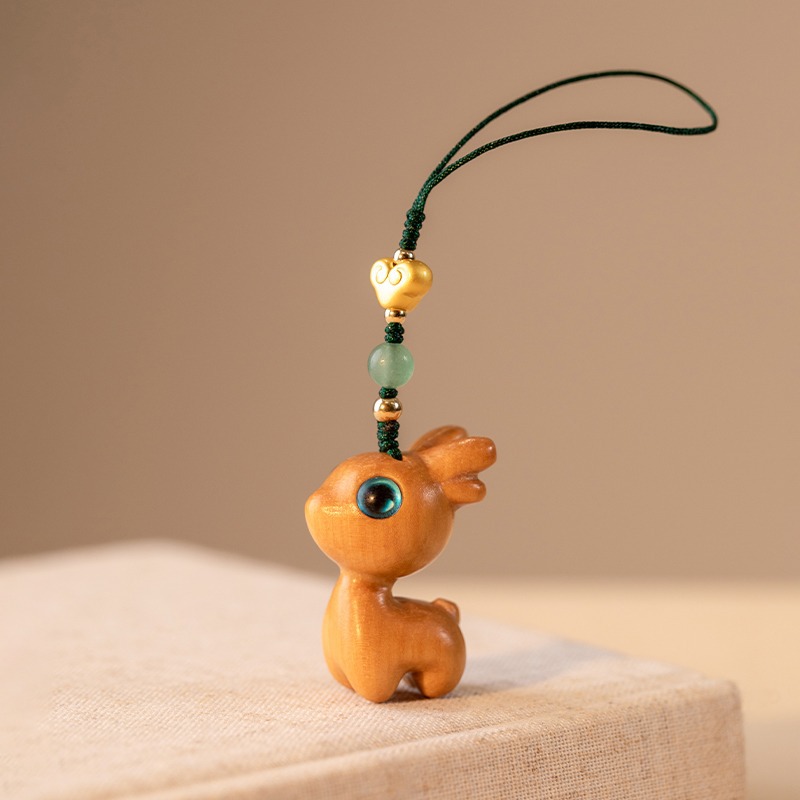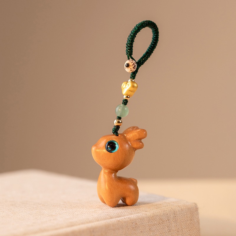 一路平安檀木小鹿汽车钥匙扣挂件男女可爱发财有鹿手机链创意礼物