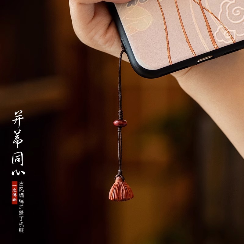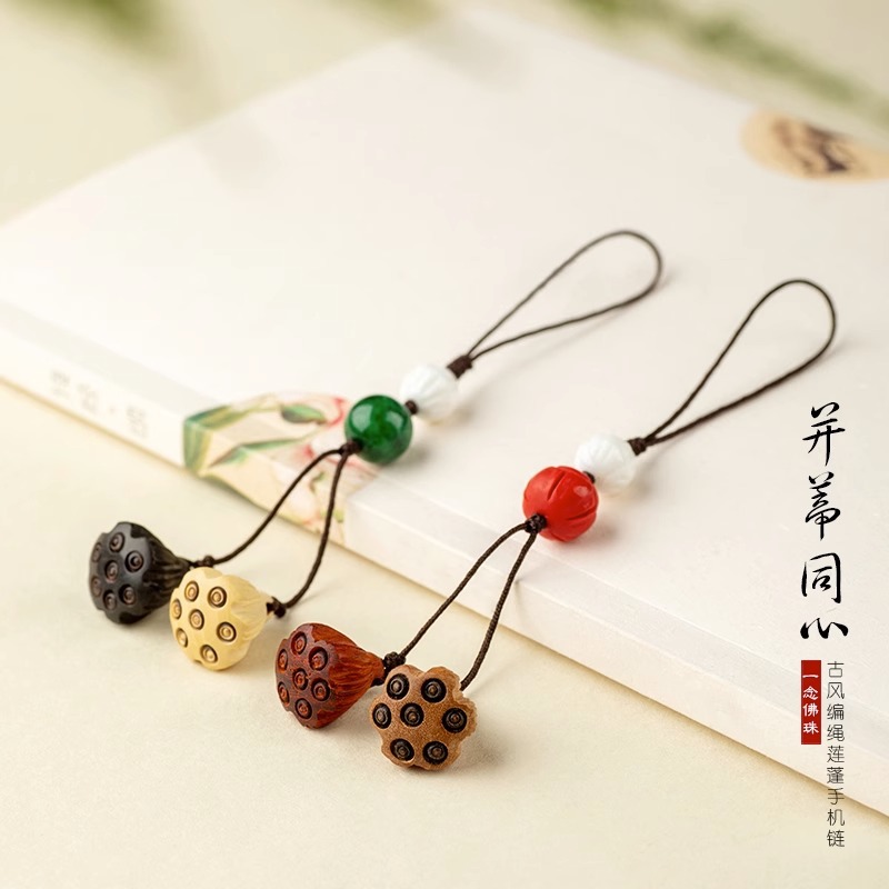 桃木莲蓬小巧挂坠檀木手机链女士古风编绳钥匙扣挂件出入挂绳挂饰