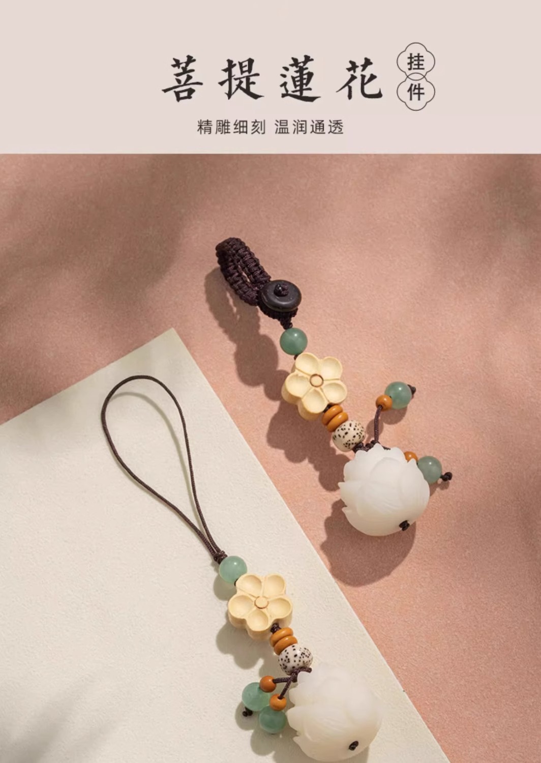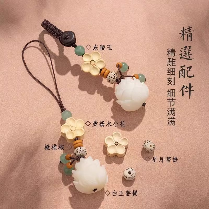 天然菩提莲花手机挂绳挂链饰品吊坠男女小众创意惊喜礼物特惠批发