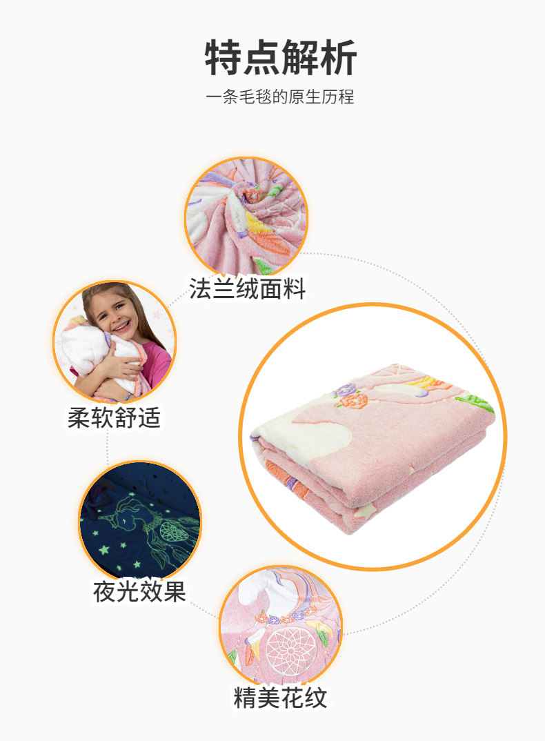 亚马逊款法兰绒毛毯 发光夜光毯 婴童毯子午睡空调毯毛毯批发