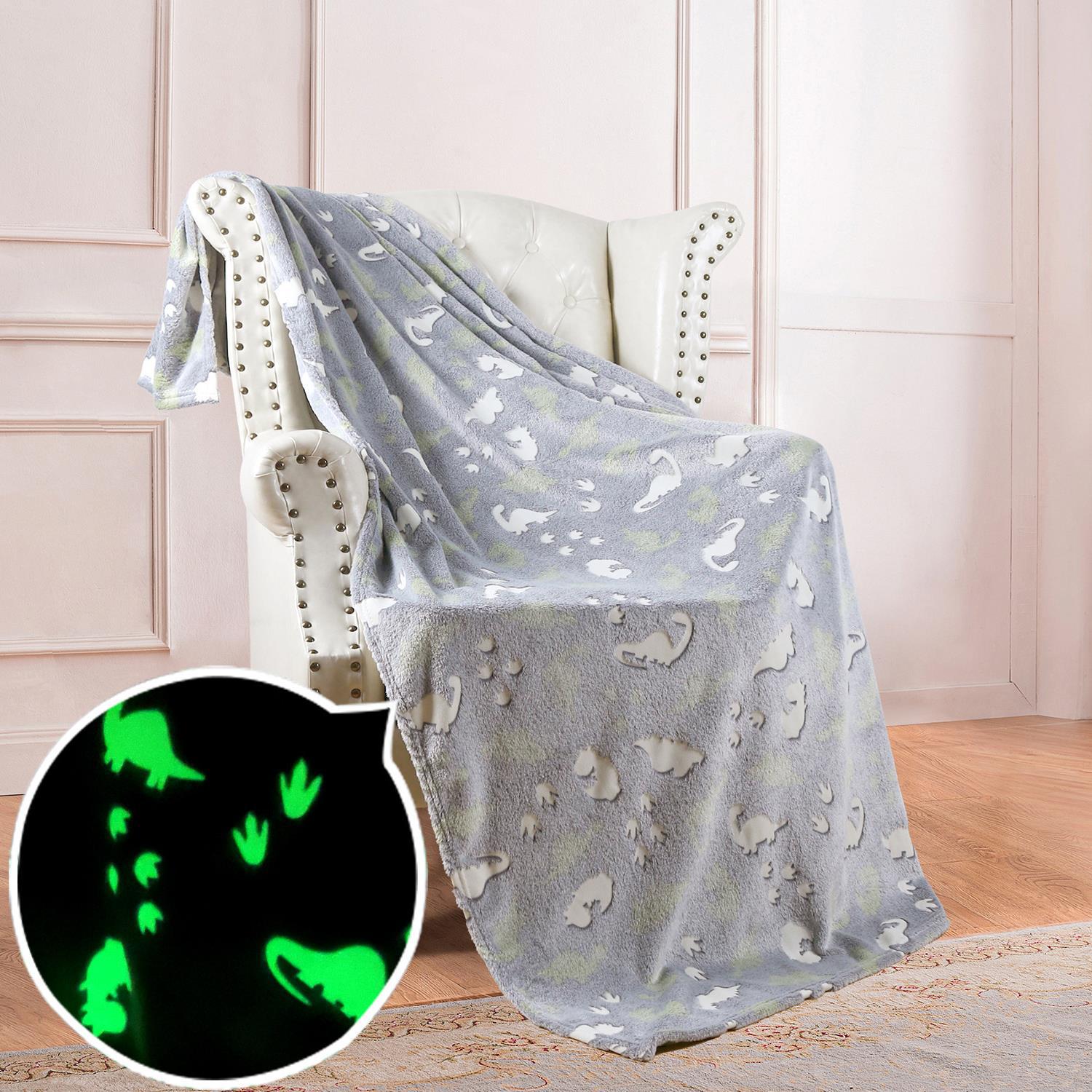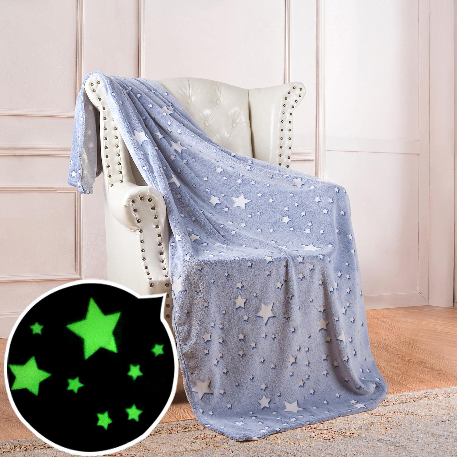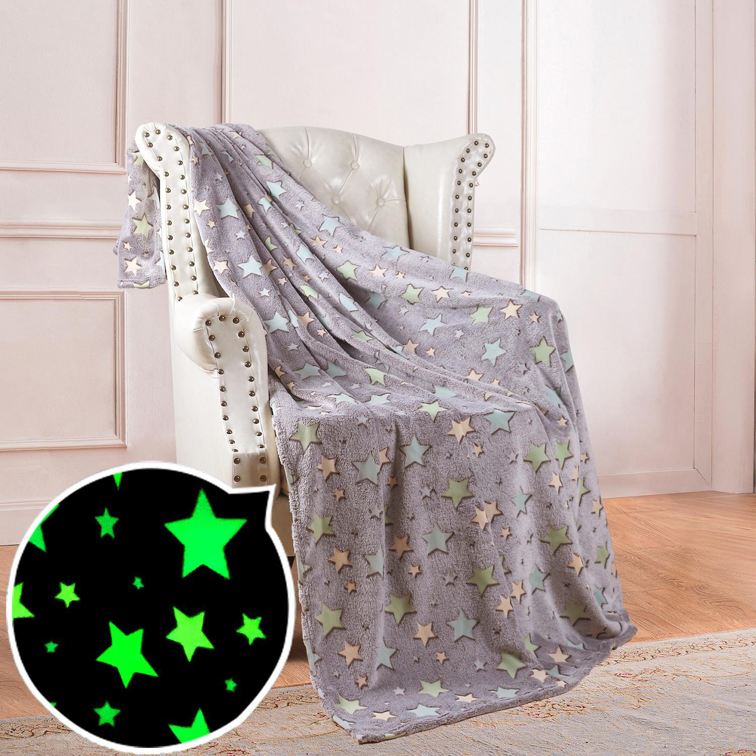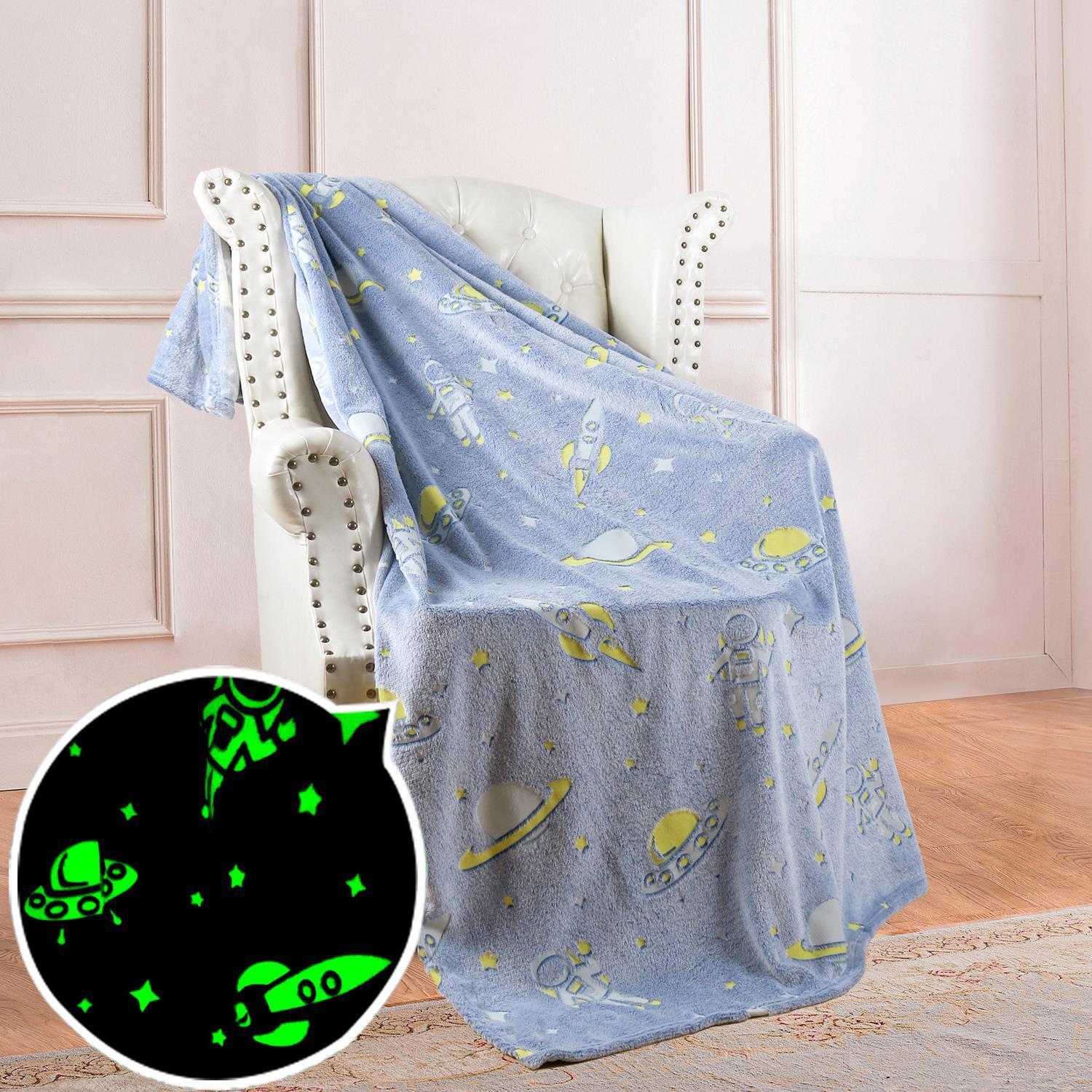 双面法兰绒夜光发光毛毯荧光胶印花毯子夏季空调被毯儿童盖毯现货