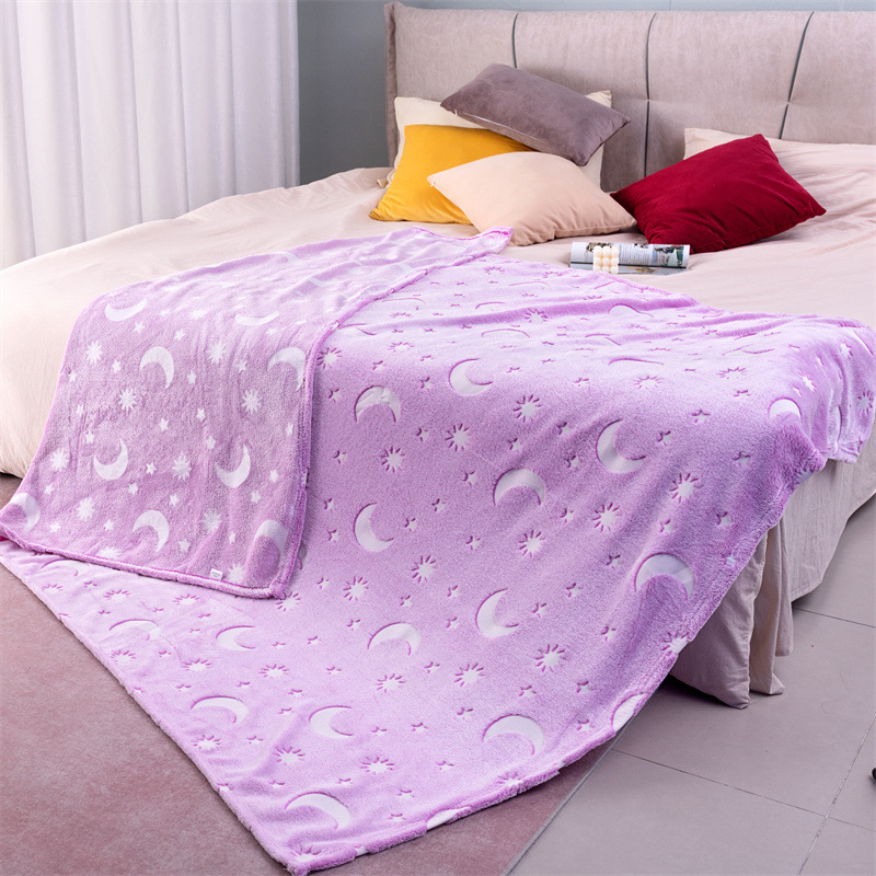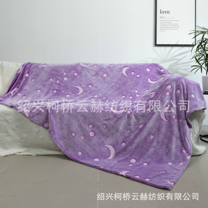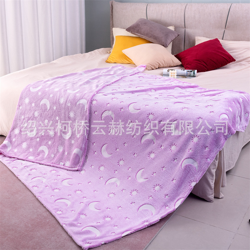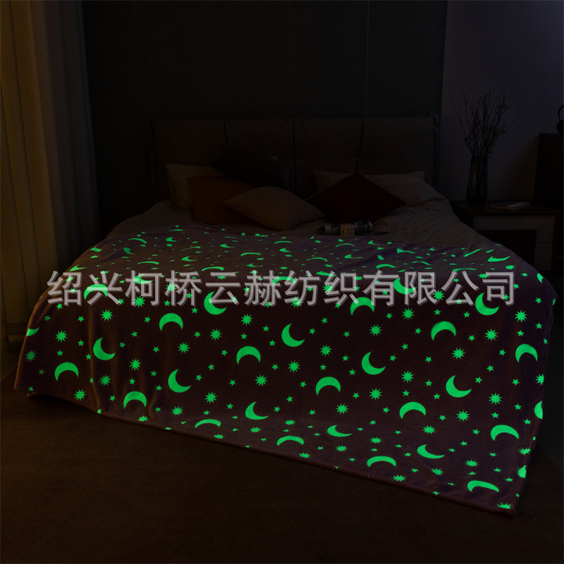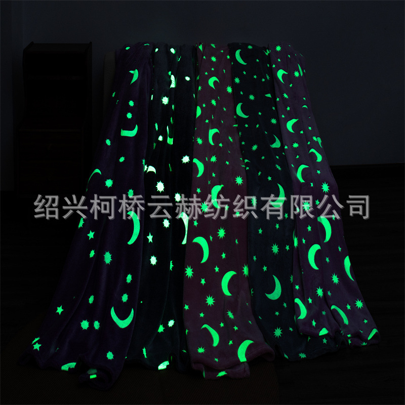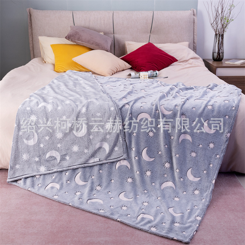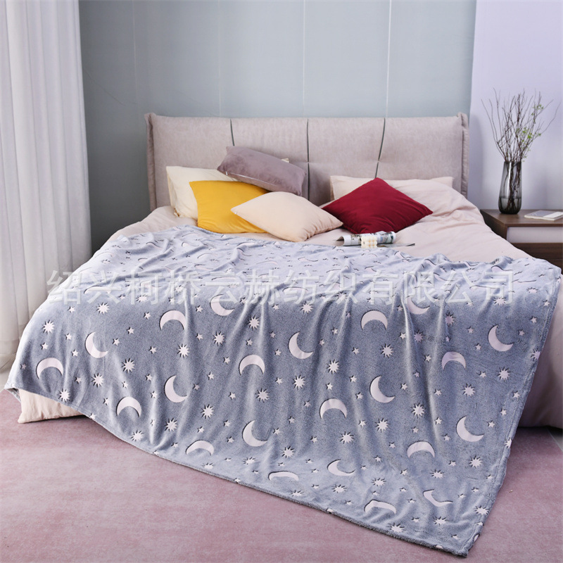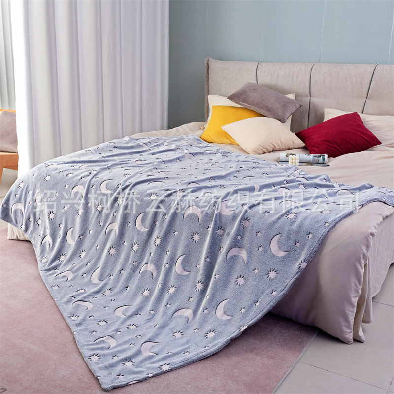 跨境亚马逊星月生辉法兰绒夜光毯午睡毯子珊瑚绒沙发盖毯儿童毯