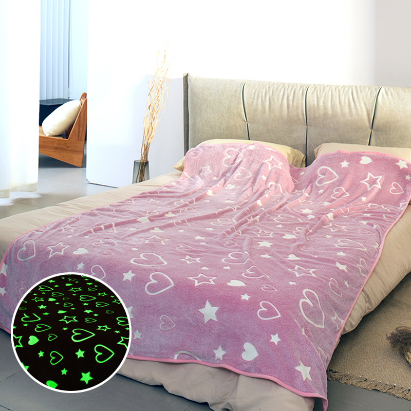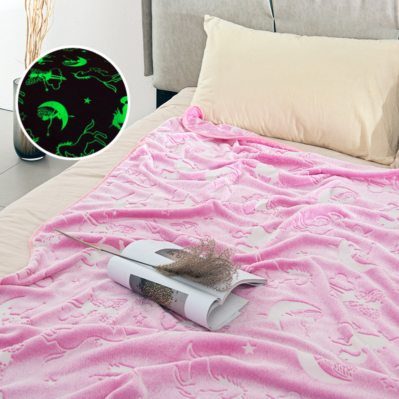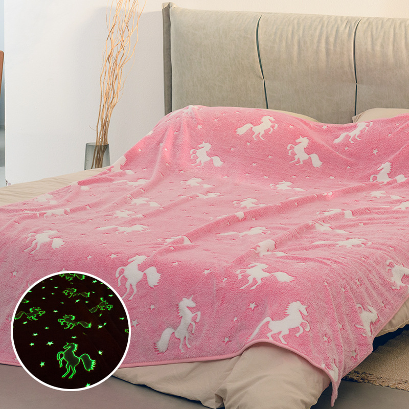 批发跨境夜光毯毛毯双面法兰绒发光毯儿童夜光毯独角兽夜光毯现货